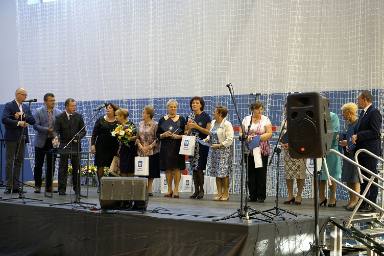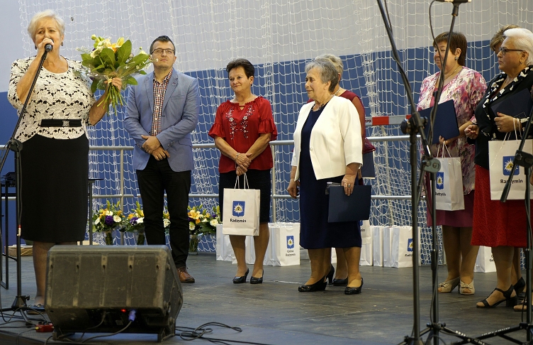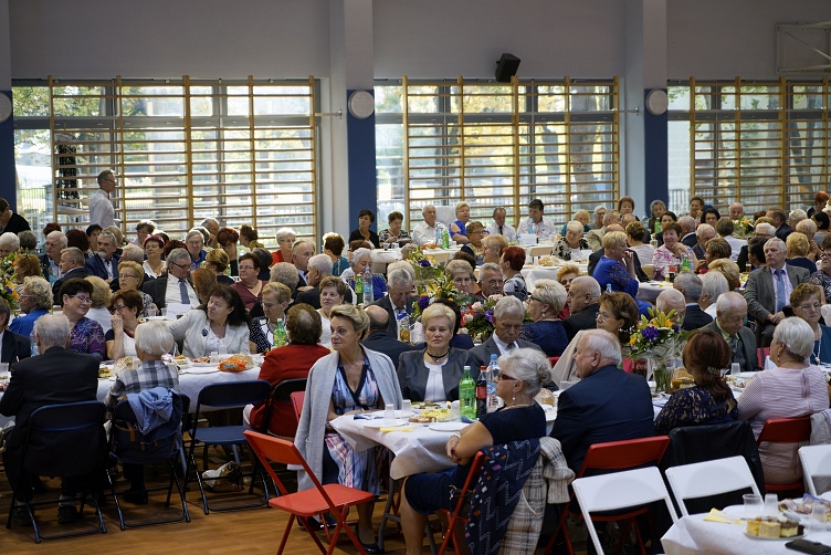 Uroczystość została zorganizowana w niedawno zbudowanej nowoczesnej hali sportowej Szkoły Podstawowej nr 1 w Radzyminie. Zaczęła się od okolicznościowych przemówień, składania życzeń i upominków seniorom, a także wręczania przez Burmistrza Krzysztofa Chacińskiego, Przewodniczącego Rady Miejskiej Krzysztofa Dobrzynieckiego i radnych gminnych i powiatowych (wśród nich m. in. panie Teresę Jóśk, Izabelę Paciorek, Martę Rajchert i Halinę Bonecką) listów gratulacyjnych dla seniorów, którzy wyróżnili się swoją aktywnością społeczną w minionym roku. W listach Burmistrz podkreślił, że zaangażowanie nagrodzonych seniorów daje pewność, że w ten sposób posiadana przez nich wiedza i umiejętności, a także doświadczenie życiowe są przekazywane innym podnosząc jakość życia oraz zachowując i promując dziedzictwo kulturowe Ziemi Radzymińskiej. Wszyscy seniorzy obecni na sali otrzymali z rąk Burmistrza Radzymina Krzysztofa Chacińskiego i Przewodniczącego Rady Miejskiej Krzysztofa Dobrzynieckiego praktyczne etui na okulary z logo Gminy Radzymin.