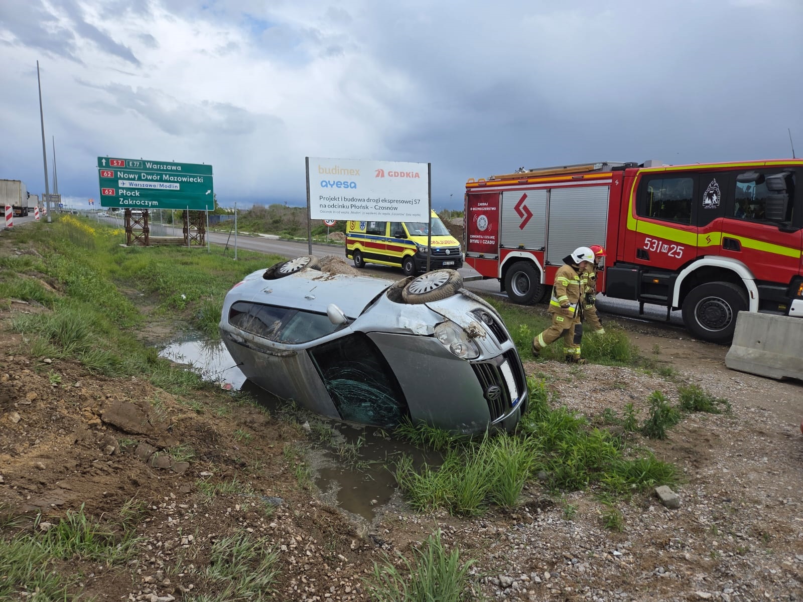 Pierwsze zgłoszenie wpłynęło do Stanowiska Kierowania Komendanta Powiatowego w Nowym Dworze Mazowieckim w godzinach popołudniowych. Dotyczyło kolizji z udziałem dwóch samochodów osobowych na odcinku S7 przebiegającym przez Zakroczym. Na miejsce wysłano zastępy z Jednostki Ratowniczo-Gaśniczej Nowy Dwór Mazowiecki oraz Ochotniczą Straż Pożarną z Zakroczymia. Wsparcie zapewniła również policja, która zajęła się zabezpieczeniem terenu i kierowaniem ruchem.