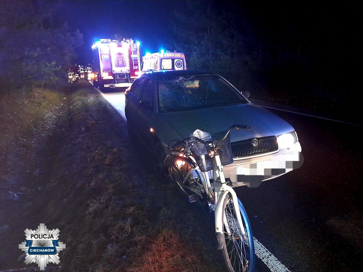 W miniony czwartek (1.02) około godz. 6.30 w miejscowości Rzeszotko, gm. Ojrzeń doszło do zdarzenia drogowego z udziałem rowerzystki. Ze wstępnych ustaleń policjantów wynika, że kierujący skodą, 26-letni mieszkaniec powiatu ciechanowskiego potrącił jadącą w tym samym kierunku cyklistkę. 50-letnia mieszkanka powiatu ciechanowskiego w wyniku odniesionych obrażeń zmarła na miejscu. Kierujący skodą był trzeźwy.
