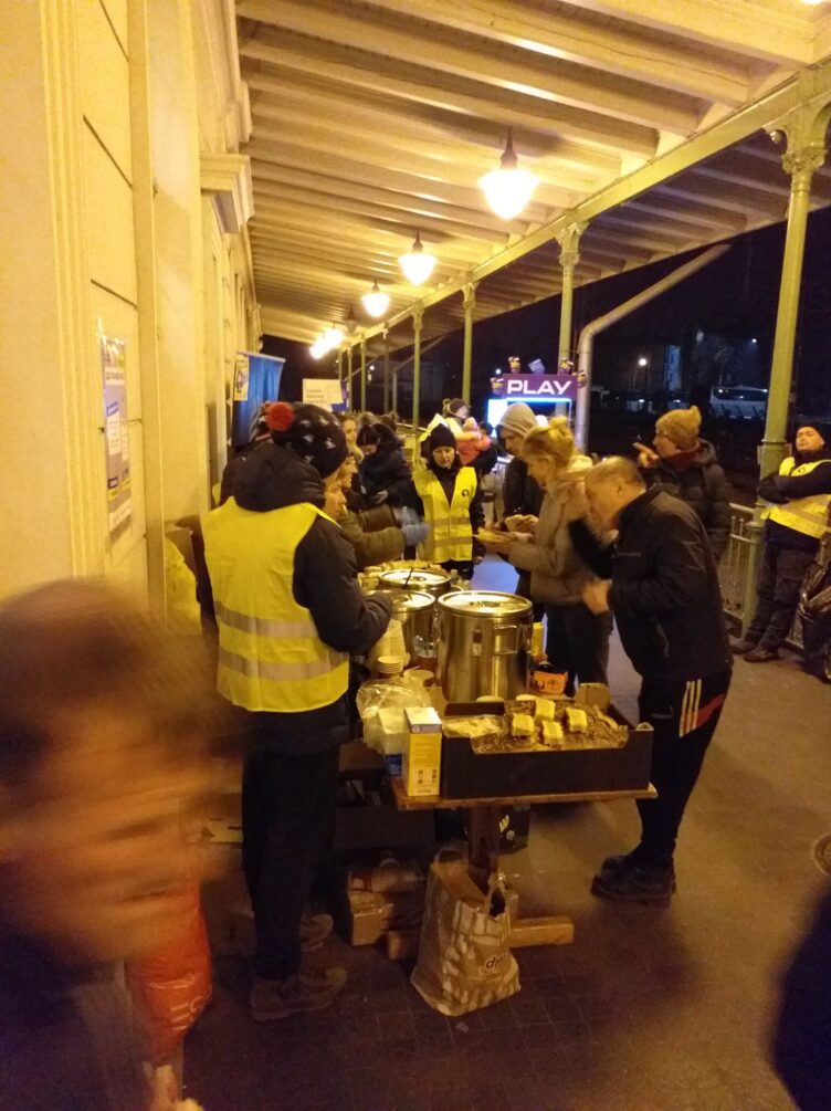 – Witamy ludzi (Sława Ukraini!), podtrzymujemy na duchu, udzielamy tylko podstawowych informacji. Informujemy, że na dworcu i na peronach jest BEZPŁATNE jedzenie i picie, punkt medyczny, państwowy transport jest również BEZPŁATNY. Podkreślamy, żeby byli bardzo ostrożni z prywatnymi transportami. Pomagamy służbom jako tłumacze (bywa, że są dzieci bez żadnych dokumentów, ludzie którzy się zgubili). Jeśli przyjeżdżający potrzebują pomocy logistycznej lub noclegu w Przemyślu, kierujemy ich do budynku dworca, do punktu recepcyjnego i sztabu kryzysowego. Do kierowania przejściem na dworzec staramy się zaangażować innych wolontariuszy, harcerzy (w szczególności do przenoszenia ciężkich rzeczy).