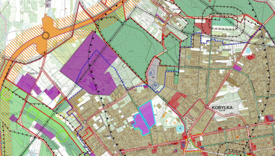 Projekt zmiany studium dotyczy wyłącznie czterech obszarów położonych przy ul. Nadmeńskiej, Kombatantów i Nadarzyńskiej.