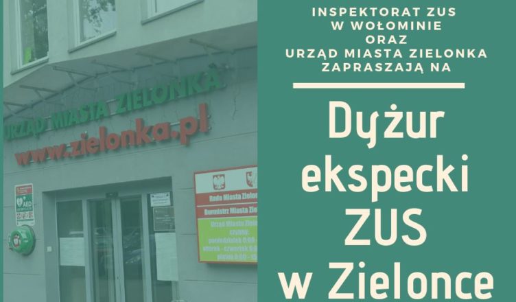 Zakład Ubezpieczeń Społecznych II Oddział w Warszawie Inspektorat w Wołominie oraz Urząd Miasta Zielonka zaprasza mieszkańców na dyżur ekspercki z zakresu ubezpieczeń społecznych.