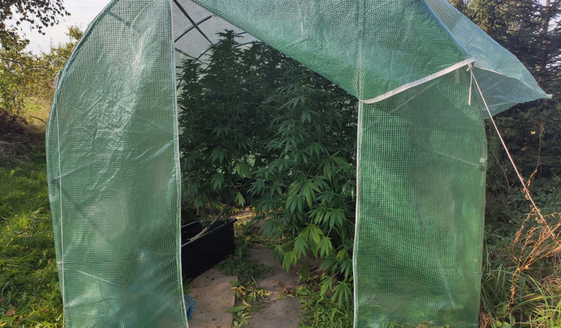 W trakcie dalszych czynności w tunelu ogrodniczym policjanci ujawnili 5 krzewów konopi rosnące w doniczkach i kolejne 3 rosnące obok tunelu. Wszystkie miały wysokość od 150 do 250 cm. 32-latek oznajmił funkcjonariuszom, że sam je posadził, sam się nimi opiekuje a pozyskany z nich susz marihuany miał mu służyć na własny użytek. Podczas przeszukania domku letniskowego funkcjonariusze zabezpieczyli dwa pudełka kartonowe z zawartością suszu roślinnego, który po zbadaniu okazał się być marihuaną w ilości blisko 2,3 kg.