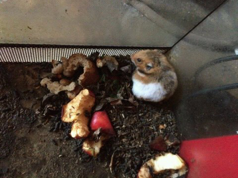 Kilka dni temu dzielnicowy z komisariatu w Radzyminie otrzymał telefon od jednego z pracowników punktu skupu złomu z informacją, że pod bramą wjazdową „ktoś” porzucił terrarium z dwoma chomikami. Z uwagi na niską temperaturę powietrza starszy aspirant Michał Kuc, mimo dnia wolnego od służby udał się na miejsce. W tym czasie pracownik przeniósł zwierzęta do biura. Zwierzęta były zmarznięte, nie miały wody, akwarium było bardzo zaniedbane i zabrudzone, a do jedzenia miały skórki z jabłka i chleba.