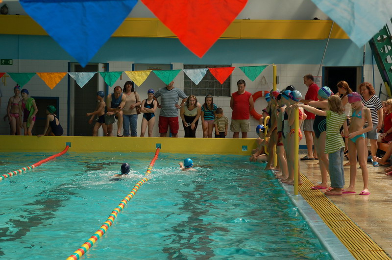 01 czerwca 2008 roku o godz. 10 00 na pływalni Ośrodka Sportu i Rekreacji ?HURAGAN” w Wołominie odbyły się zawody pływackie z okazji ? Dnia Dziecka” dla klas III szkół podstawowych. W zawodach pływackich wzięło udział 5 zespołów 12- sto osobowych z całego powiatu wołomińskiego.