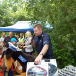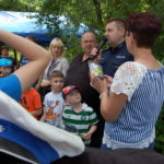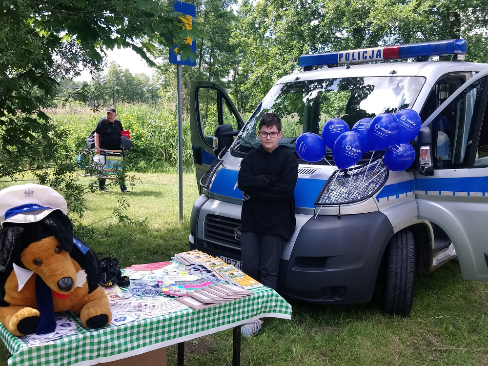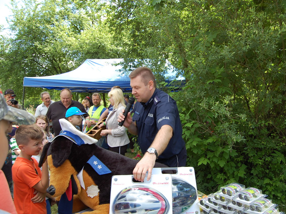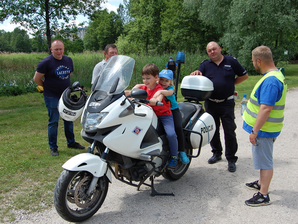 Policjanci udostępnili ponadto dla wszystkich małych i dużych uczestników wspólnej zabawy policyjne motocykle i radiowozy. Były konkursy, quizy, pytania dla dzieci, rodziców oraz ich opiekunów, nie tylko te dotyczące bezpieczeństwa w ruchu drogowym. Uczestnicy wspólnej zabawy z Policjantami otrzymali odblaskowe opaski, pozwalające na bezpieczne poruszanie się po drogach przez dzieci. Po raz kolejny należy stwierdzić, że dzieci, młodzież ich rodzice i opiekunowie posiadają dużą wiedzę na temat naszego wspólnego bezpieczeństwa i pracy Policji.