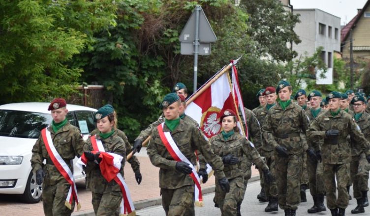 Obchody rozpoczęły się Mszą Św. odprawioną w Kościele Matki Bożej Częstochowskiej, następnie uczestnicy przeszli na Pl. 3 Maja, gdzie odbyła się m.in. uroczysta defilada uczniów oraz pokazy wyszkolenia sportowo-obronnego. Starosta Adam Lubiak w przemówieniu przypomniał bohaterską historię Patrona szkoły – pilotów 111. Eskadry Myśliwskiej, którzy walczyli m.in. w obronie Warszawy oraz współtworzyli legendarny Dywizjon 303.
