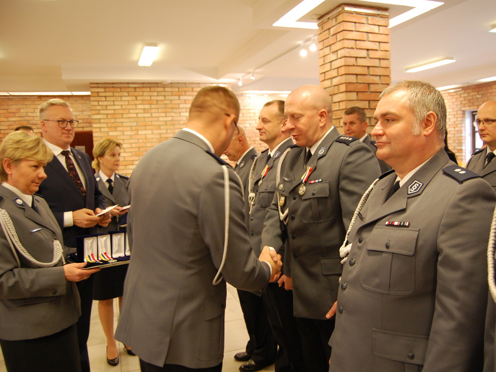 Dzień Pracownika Cywilnego był też doskonałą okazją do odznaczenia specjalnie przygotowanym na obchody ?100-lecia powstania Policji Państwowej ? medalem okolicznościowym pracowników i funkcjonariuszy wołomińskiej Komendy oraz przedstawicieli samorządów i zaproszonych gości. Medalem ?100-lecia powstania Policji Państwowej? zostali uhonorowani również – Radny Powiatowy Sławomir Pisarczyk, Naczelnik Zarządzania Kryzysowego Starostwa Powiatowego Paweł Kaczmarczyk, Przewodniczący NSSZ Pracowników Cywilnych KSP Jan Gałązka oraz Pan Krzysztof Tyszka. Łącznie podczas obchodów Dnia Pracownika Cywilnego odznaczono 55 osób.