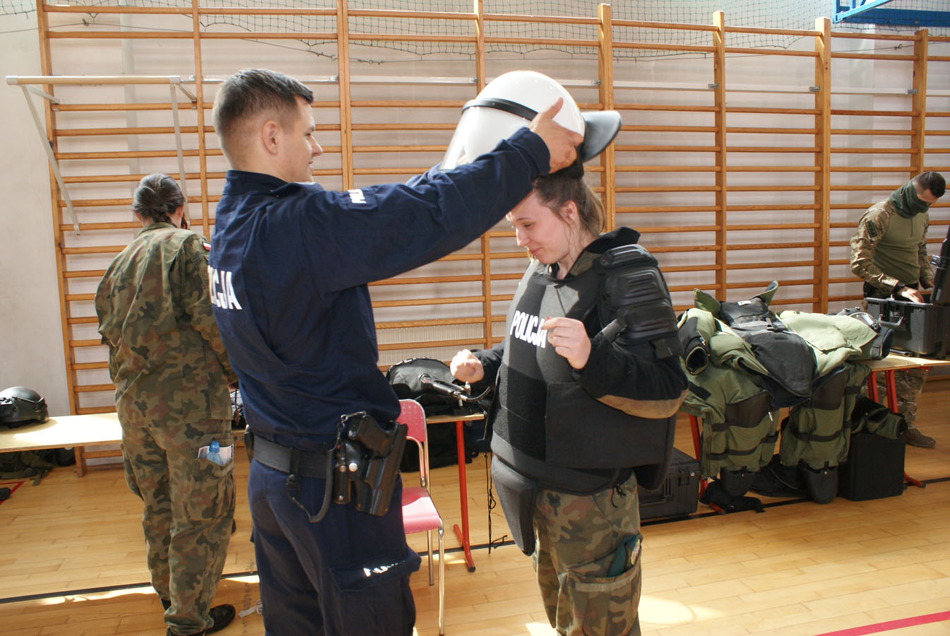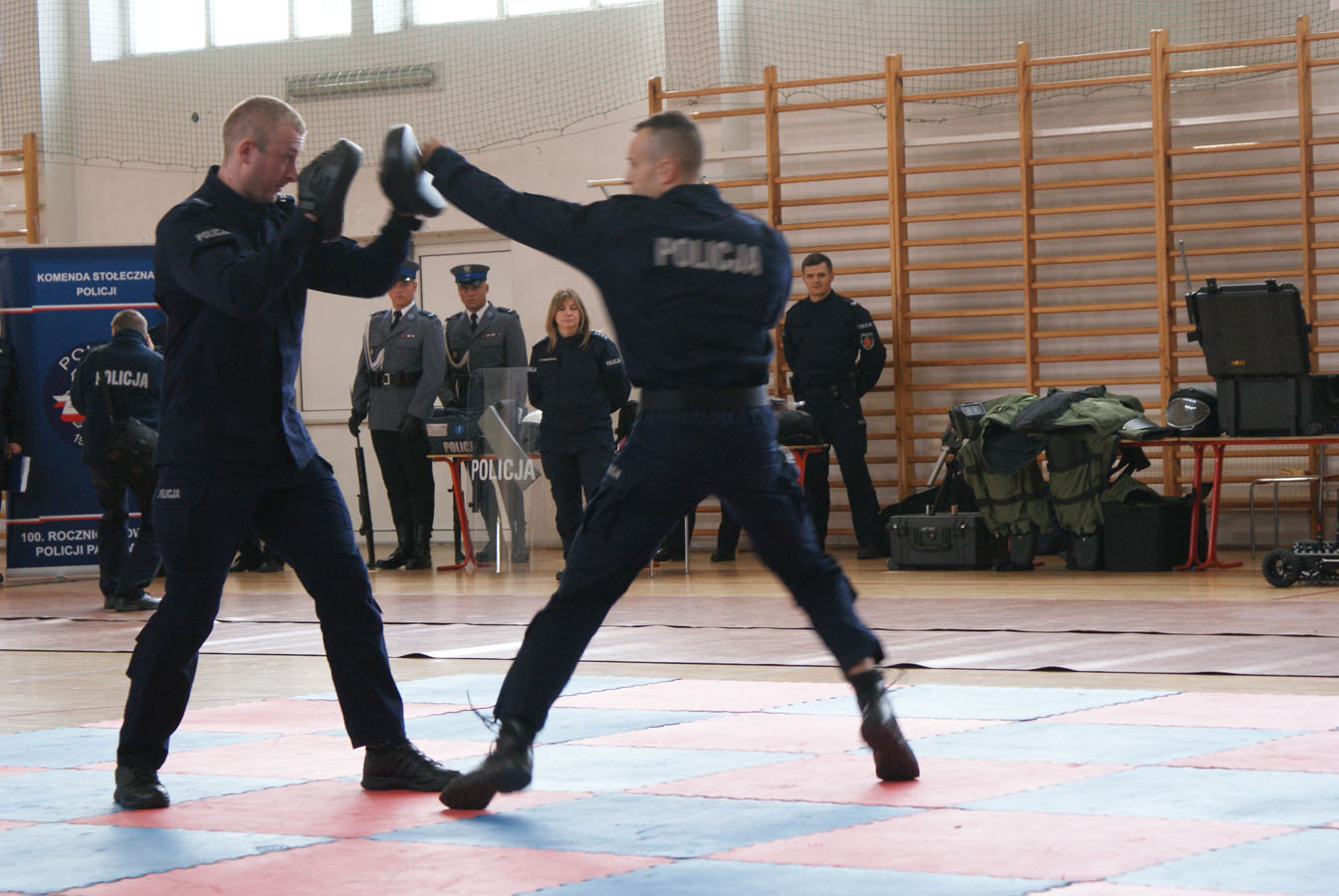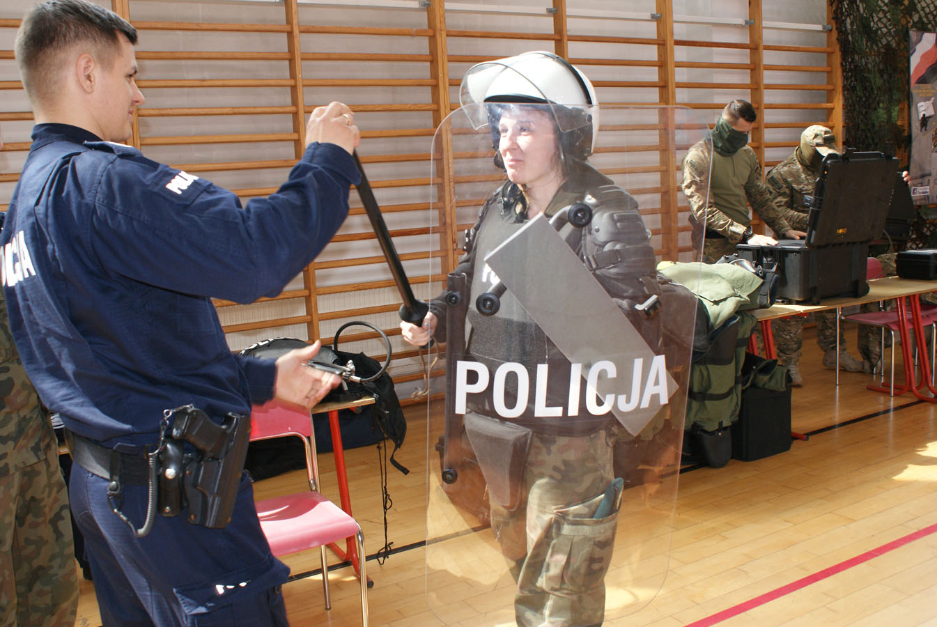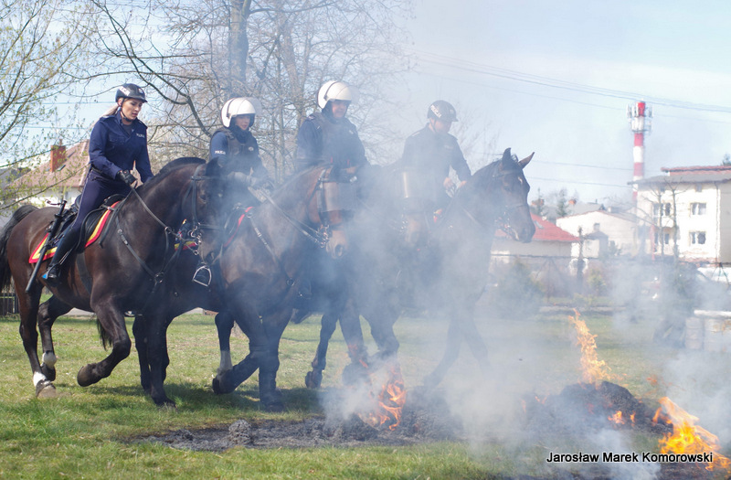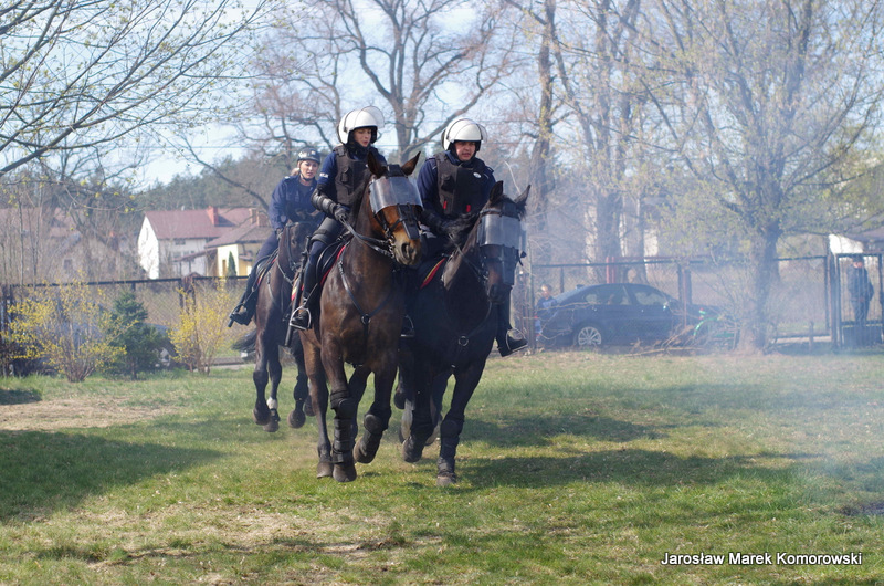 Warszawscy funkcjonariusze zaprezentowali ciekawe pokazy praktyczne, pochwalili się wiedzą i umiejętnościami z zakresu samoobrony, technik interwencyjnych oraz pierwszej pomocy. Pokazali broń policyjną, akcesoria do zabezpieczeń oraz pojazdy i urządzenia wykorzystywane w pionach i wydziałach Komendy Stołecznej Policji. Wsparciem merytorycznym i logistycznym przedsięwzięcia były Komendy Powiatowe: Państwowej Straży Pożarnej oraz Policji w Wołominie. Wśród zaproszonej młodzieży w spotkaniu uczestniczyły szkoły PUL z Płocka i Ciechanowa wraz z wychowawcami. Pierwszą część pokazów praktycznych zorganizowano na boisku Komendy Powiatowej PSP W Wołominie. Społeczność liceum mogła podziwiać efekty pracy Wydziału Wywiadowczo ? Patrolowego KSP z udziałem zwierząt. Bardzo ciekawą prezentację wyszkolenia koni służbowych i psów tropiących komentarzem opatrzyła sierż. szt. Katarzyna Wieczorek. Następnie Samodzielny Pododdział Kontrterrorystyczny Policji w Warszawie zaprezentował pokaz skutków manipulacji przy ładunku wybuchowym, a mł. asp. Grzegorz Kosiński przedstawił zasady bezpiecznego posługiwania się materiałami pirotechnicznymi. Kolejna część programu odbyła się w sali gimnastycznej szkoły. Funkcjonariusze Wydziału Doskonalenia Zawodowego KSP przygotowali pokaz technik samoobrony i obezwładniania osób przy wykorzystaniu środków przymusu bezpośredniego. Natomiast Samodzielny Pododdział Kontrterrorystycznego Policji zaprezentował, jakie podejmuje działania w przypadku ujawnienia paczki niewiadomego pochodzenia, która może stanowić zagrożenie dla bezpieczeństwa publicznego. Następnym punktem programu był pokaz musztry z karabinkiem reprezentacyjnym 5,56 mm w wykonaniu policjantów z Oddziału Prewencji Policji w Warszawie. Uczniowie poznali też zadania funkcjonariuszy z Wydziału Ruchu Drogowego KSP, w których wykonaniu zobaczyli dwie inscenizacje: zabezpieczenie miejsca wypadku drogowego oraz profesjonalny pokaz kierowania ruchem drogowym. Na uwagę zasłużył również popis przygotowany przez funkcjonariuszy Laboratorium Kryminalistycznego KSP i Wydziału Dochodzeniowo-Śledczego KSP, czyli oględziny miejsca zdarzenia z wykorzystaniem specjalistycznego sprzętu. Ostatnim punktem programu była prezentacja pojazdów wykorzystywanych przez warszawskich funkcjonariuszy policji. Młodzież I LO PUL mogła obejrzeć m.in.: radiowozy wykorzystywane przez specgrupę ?SPEED?, specjalistyczną łódź motorową, ambulans kryminalistyczny, sprzęt pirotechniczny policyjnych komandosów z Samodzielnego Pododdziału Antyterrorystycznego z Warszawy oraz policyjne motocykle. Fachowego wprowadzenia i opisu przedsięwzięcia dokonał insp. Sławomir Cisowski. Po pokazach młodzież miała okazję porozmawiać z funkcjonariuszami i odwiedzić stoiska promocyjne poszczególnych wydziałów. Niewątpliwie zaprezentowany, niezwykle bogaty program spotkania zaowocuje wśród młodzieży mundurowej PUL wyborem służby w Policji.