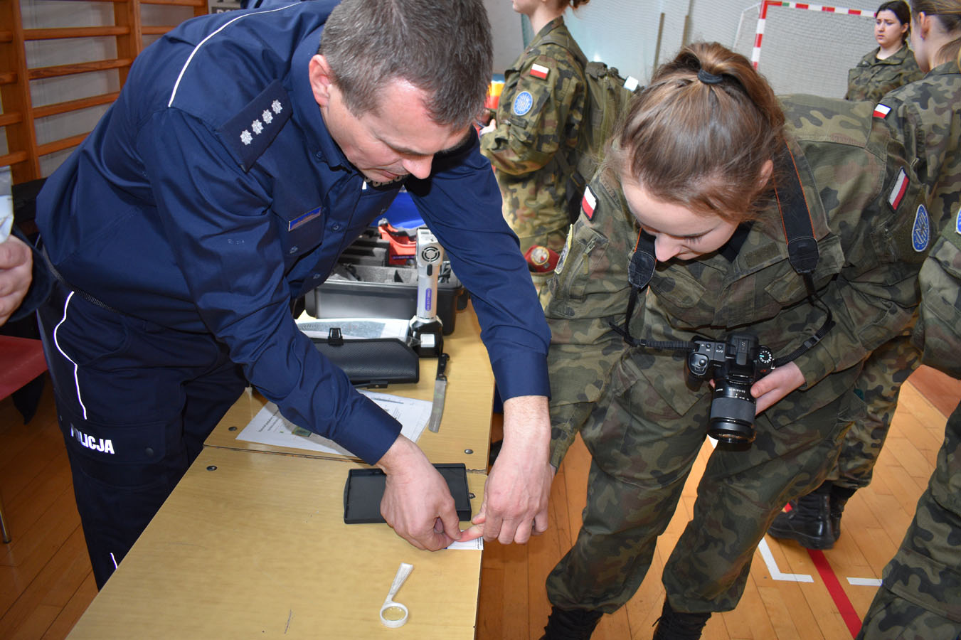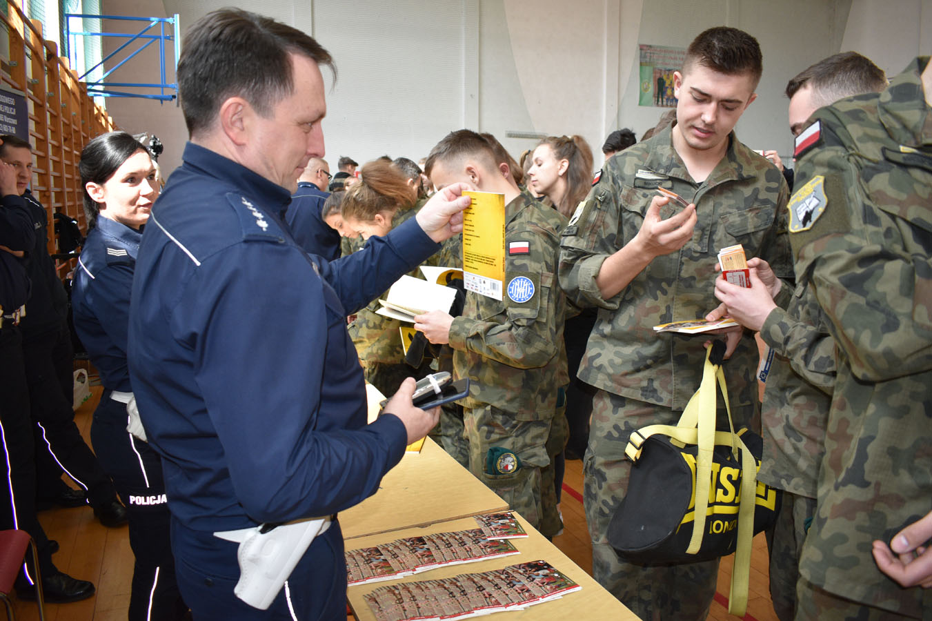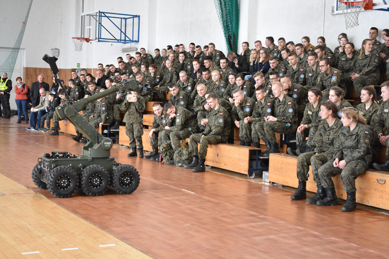 Warszawscy funkcjonariusze zaprezentowali ciekawe pokazy praktyczne, pochwalili się wiedzą i umiejętnościami z zakresu samoobrony, technik interwencyjnych oraz pierwszej pomocy. Pokazali broń policyjną, akcesoria do zabezpieczeń oraz pojazdy i urządzenia wykorzystywane w pionach i wydziałach Komendy Stołecznej Policji. Wsparciem merytorycznym i logistycznym przedsięwzięcia były Komendy Powiatowe: Państwowej Straży Pożarnej oraz Policji w Wołominie. Wśród zaproszonej młodzieży w spotkaniu uczestniczyły szkoły PUL z Płocka i Ciechanowa wraz z wychowawcami. Pierwszą część pokazów praktycznych zorganizowano na boisku Komendy Powiatowej PSP W Wołominie. Społeczność liceum mogła podziwiać efekty pracy Wydziału Wywiadowczo ? Patrolowego KSP z udziałem zwierząt. Bardzo ciekawą prezentację wyszkolenia koni służbowych i psów tropiących komentarzem opatrzyła sierż. szt. Katarzyna Wieczorek. Następnie Samodzielny Pododdział Kontrterrorystyczny Policji w Warszawie zaprezentował pokaz skutków manipulacji przy ładunku wybuchowym, a mł. asp. Grzegorz Kosiński przedstawił zasady bezpiecznego posługiwania się materiałami pirotechnicznymi. Kolejna część programu odbyła się w sali gimnastycznej szkoły. Funkcjonariusze Wydziału Doskonalenia Zawodowego KSP przygotowali pokaz technik samoobrony i obezwładniania osób przy wykorzystaniu środków przymusu bezpośredniego. Natomiast Samodzielny Pododdział Kontrterrorystycznego Policji zaprezentował, jakie podejmuje działania w przypadku ujawnienia paczki niewiadomego pochodzenia, która może stanowić zagrożenie dla bezpieczeństwa publicznego. Następnym punktem programu był pokaz musztry z karabinkiem reprezentacyjnym 5,56 mm w wykonaniu policjantów z Oddziału Prewencji Policji w Warszawie. Uczniowie poznali też zadania funkcjonariuszy z Wydziału Ruchu Drogowego KSP, w których wykonaniu zobaczyli dwie inscenizacje: zabezpieczenie miejsca wypadku drogowego oraz profesjonalny pokaz kierowania ruchem drogowym. Na uwagę zasłużył również popis przygotowany przez funkcjonariuszy Laboratorium Kryminalistycznego KSP i Wydziału Dochodzeniowo-Śledczego KSP, czyli oględziny miejsca zdarzenia z wykorzystaniem specjalistycznego sprzętu. Ostatnim punktem programu była prezentacja pojazdów wykorzystywanych przez warszawskich funkcjonariuszy policji. Młodzież I LO PUL mogła obejrzeć m.in.: radiowozy wykorzystywane przez specgrupę ?SPEED?, specjalistyczną łódź motorową, ambulans kryminalistyczny, sprzęt pirotechniczny policyjnych komandosów z Samodzielnego Pododdziału Antyterrorystycznego z Warszawy oraz policyjne motocykle. Fachowego wprowadzenia i opisu przedsięwzięcia dokonał insp. Sławomir Cisowski. Po pokazach młodzież miała okazję porozmawiać z funkcjonariuszami i odwiedzić stoiska promocyjne poszczególnych wydziałów. Niewątpliwie zaprezentowany, niezwykle bogaty program spotkania zaowocuje wśród młodzieży mundurowej PUL wyborem służby w Policji.