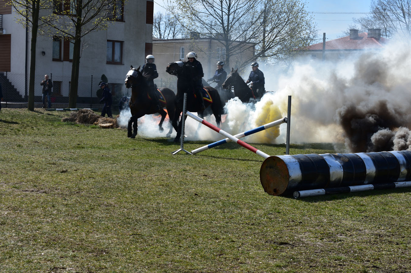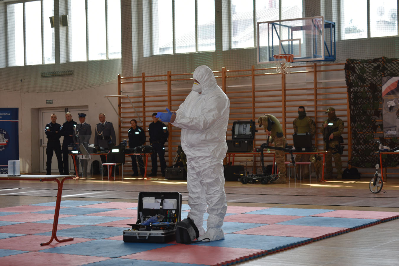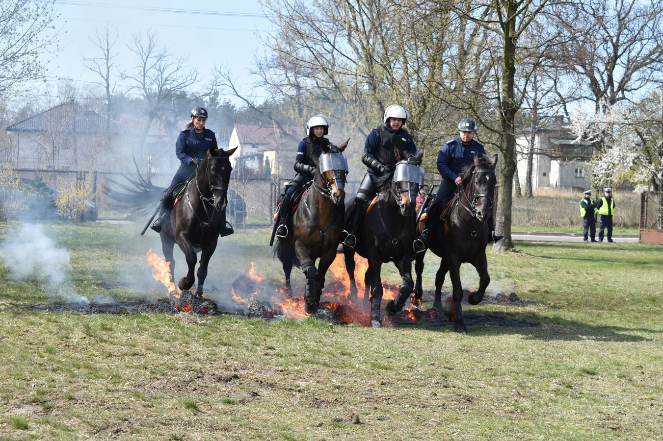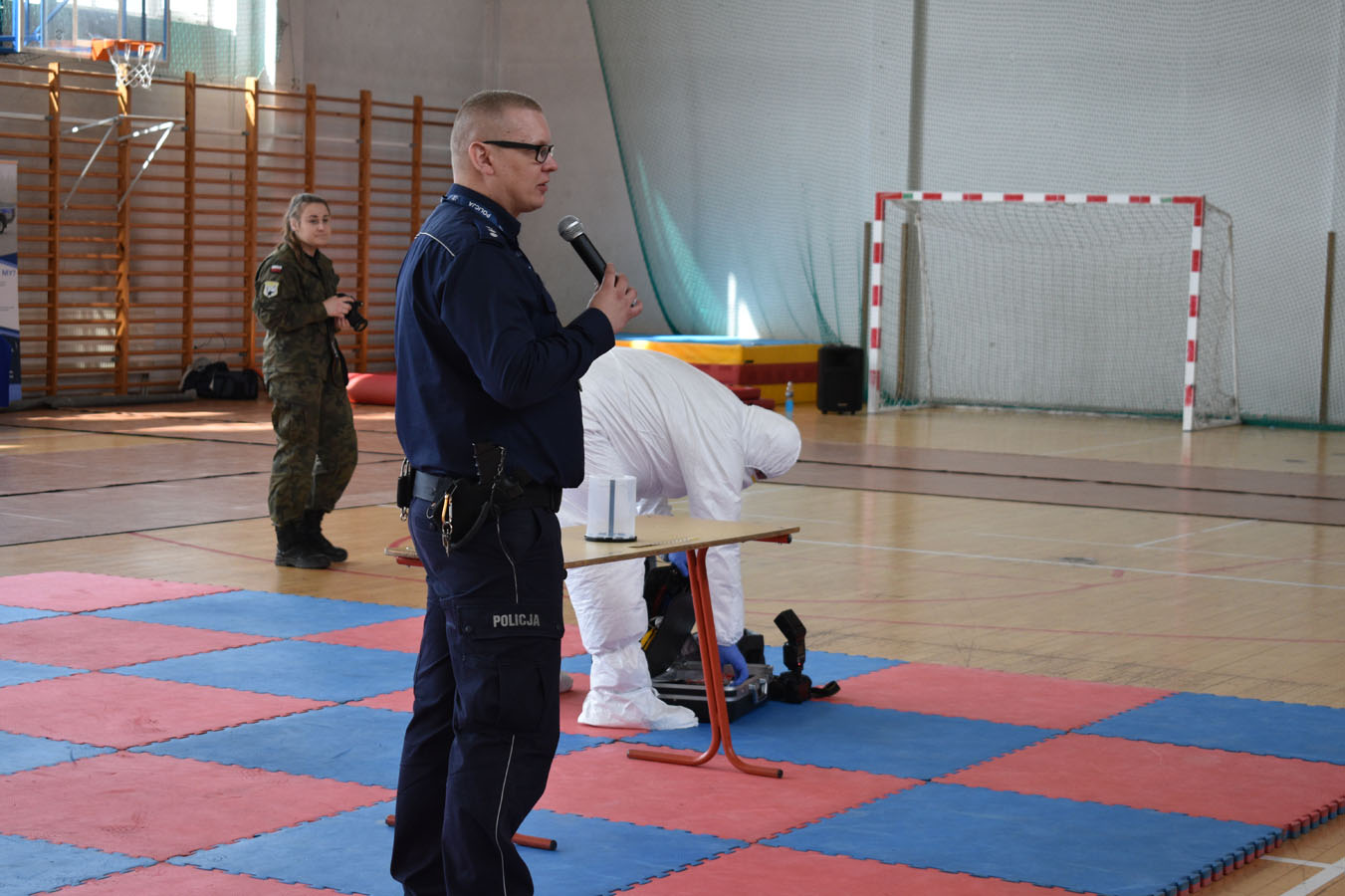 Warszawscy funkcjonariusze zaprezentowali ciekawe pokazy praktyczne, pochwalili się wiedzą i umiejętnościami z zakresu samoobrony, technik interwencyjnych oraz pierwszej pomocy. Pokazali broń policyjną, akcesoria do zabezpieczeń oraz pojazdy i urządzenia wykorzystywane w pionach i wydziałach Komendy Stołecznej Policji. Wsparciem merytorycznym i logistycznym przedsięwzięcia były Komendy Powiatowe: Państwowej Straży Pożarnej oraz Policji w Wołominie. Wśród zaproszonej młodzieży w spotkaniu uczestniczyły szkoły PUL z Płocka i Ciechanowa wraz z wychowawcami. Pierwszą część pokazów praktycznych zorganizowano na boisku Komendy Powiatowej PSP W Wołominie. Społeczność liceum mogła podziwiać efekty pracy Wydziału Wywiadowczo ? Patrolowego KSP z udziałem zwierząt. Bardzo ciekawą prezentację wyszkolenia koni służbowych i psów tropiących komentarzem opatrzyła sierż. szt. Katarzyna Wieczorek. Następnie Samodzielny Pododdział Kontrterrorystyczny Policji w Warszawie zaprezentował pokaz skutków manipulacji przy ładunku wybuchowym, a mł. asp. Grzegorz Kosiński przedstawił zasady bezpiecznego posługiwania się materiałami pirotechnicznymi. Kolejna część programu odbyła się w sali gimnastycznej szkoły. Funkcjonariusze Wydziału Doskonalenia Zawodowego KSP przygotowali pokaz technik samoobrony i obezwładniania osób przy wykorzystaniu środków przymusu bezpośredniego. Natomiast Samodzielny Pododdział Kontrterrorystycznego Policji zaprezentował, jakie podejmuje działania w przypadku ujawnienia paczki niewiadomego pochodzenia, która może stanowić zagrożenie dla bezpieczeństwa publicznego. Następnym punktem programu był pokaz musztry z karabinkiem reprezentacyjnym 5,56 mm w wykonaniu policjantów z Oddziału Prewencji Policji w Warszawie. Uczniowie poznali też zadania funkcjonariuszy z Wydziału Ruchu Drogowego KSP, w których wykonaniu zobaczyli dwie inscenizacje: zabezpieczenie miejsca wypadku drogowego oraz profesjonalny pokaz kierowania ruchem drogowym. Na uwagę zasłużył również popis przygotowany przez funkcjonariuszy Laboratorium Kryminalistycznego KSP i Wydziału Dochodzeniowo-Śledczego KSP, czyli oględziny miejsca zdarzenia z wykorzystaniem specjalistycznego sprzętu. Ostatnim punktem programu była prezentacja pojazdów wykorzystywanych przez warszawskich funkcjonariuszy policji. Młodzież I LO PUL mogła obejrzeć m.in.: radiowozy wykorzystywane przez specgrupę ?SPEED?, specjalistyczną łódź motorową, ambulans kryminalistyczny, sprzęt pirotechniczny policyjnych komandosów z Samodzielnego Pododdziału Antyterrorystycznego z Warszawy oraz policyjne motocykle. Fachowego wprowadzenia i opisu przedsięwzięcia dokonał insp. Sławomir Cisowski. Po pokazach młodzież miała okazję porozmawiać z funkcjonariuszami i odwiedzić stoiska promocyjne poszczególnych wydziałów. Niewątpliwie zaprezentowany, niezwykle bogaty program spotkania zaowocuje wśród młodzieży mundurowej PUL wyborem służby w Policji.