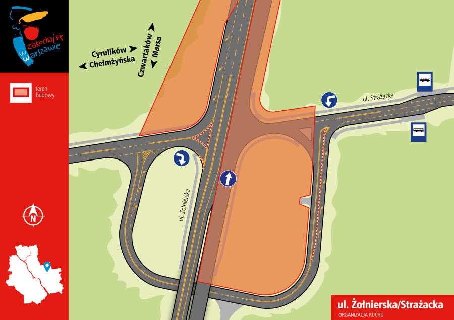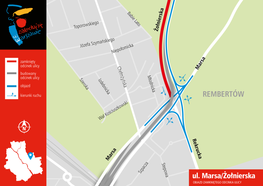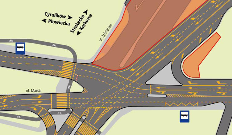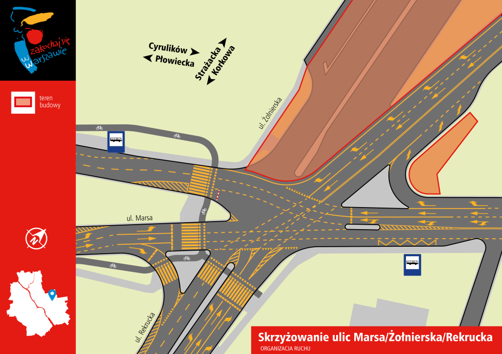 Zmiany czekają kierowców także na skrzyżowaniu z ulicami Marsa i Rekrucką. Wprowadzony zostanie zakaz skrętu dla jadących ul. Żołnierską od strony Strażackiej w lewo w ul. Marsa w kierunku Starego Rembertowa. Jadący w tej relacji będą mogli tylko pojechać prosto do ul. Rekruckiej lub skręcić w prawo w kierunku Trasy Siekierkowskiej.