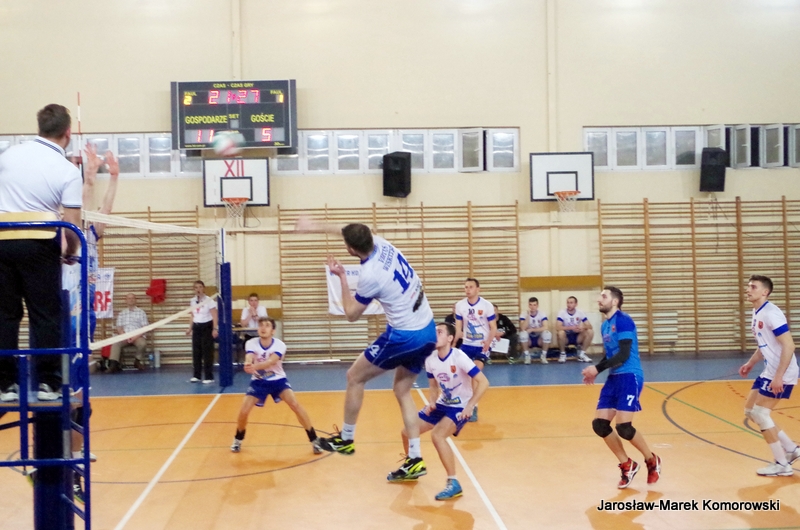 Trzeci set również przebiegał pod dyktando gospodarzy, którzy od jego początku posiadali kilkupunktową przewagę. W pewnym momencie dominacja Wichru zaczęła gwałtownie rosnąć, by osiągnąć stan 22:13. Po ataku Wiktora Karpieni było 23:13. Następnie 24. punkt dorzucił Mirosław Krone. Przy piłce setowej atakował Wiktor Karpienia, a błąd dotknięcia siatki bloku gości spowodował, że wynik został ustalony na poziomie 25:13.