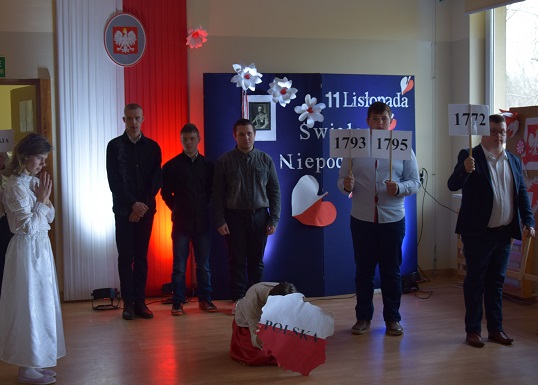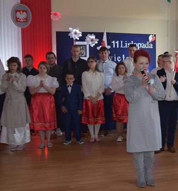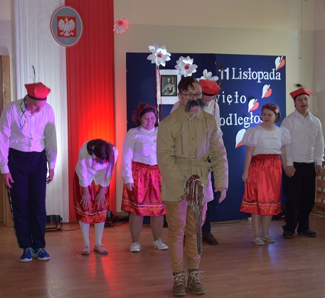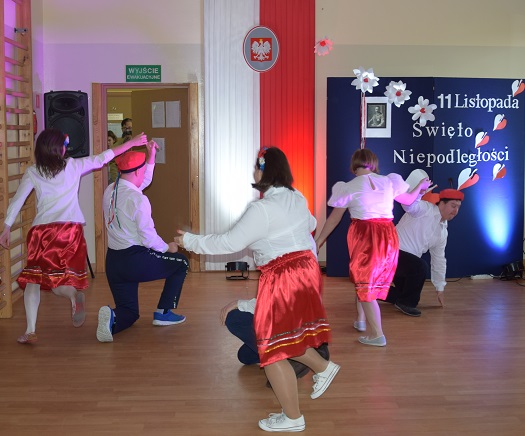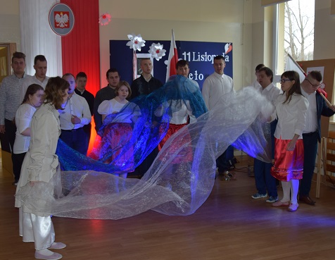 Odsłonięcie ekspozycji uzupełniała część artystyczna, podczas której uczniowie zaprezentowali pieśni, tańce i scenki historyczne związane z tematyką 103. rocznicy odzyskania niepodległości oraz budowania polskiej państwowości.