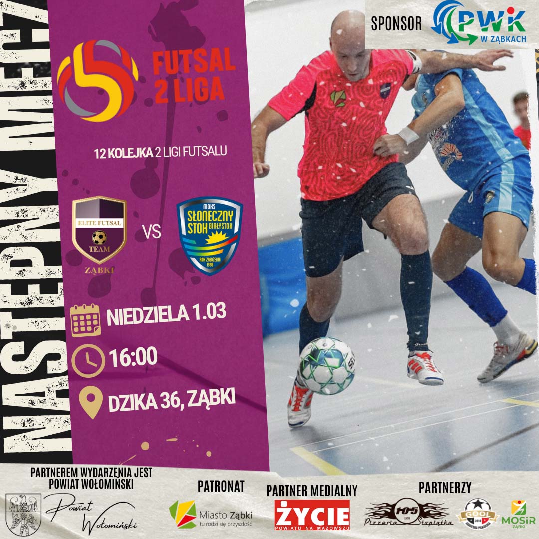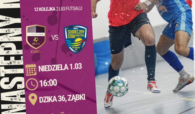 Spotkanie odbędzie się 1 marca 2026 roku o godzinie 16:00 w hali Szkoła Podstawowa nr 6 w Ząbkach przy ulicy Dzikiej 36 . Rywalem gospodarzy będzie MOKS Słoneczny Stok Białystok, czyli rezerwy Jagiellonia Futsal Białystok. Zapowiada się emocjonujące starcie, w którym nie zabraknie walki, zaangażowania i sportowych emocji do ostatniej minuty.