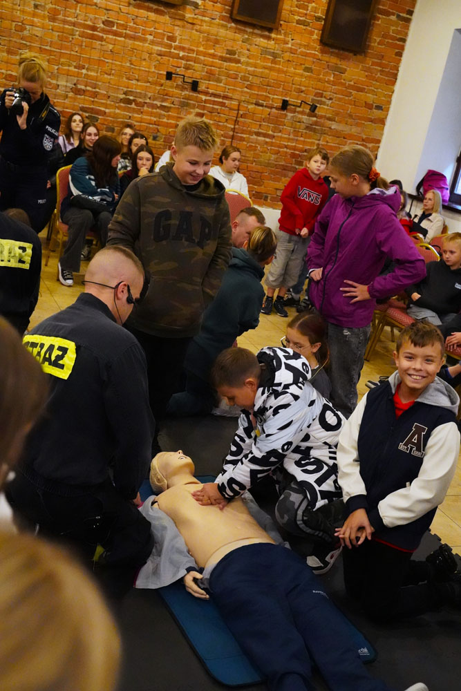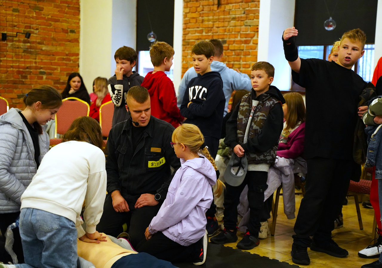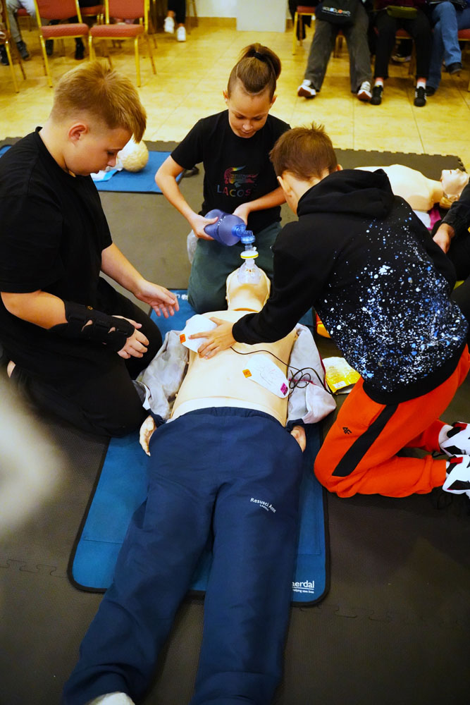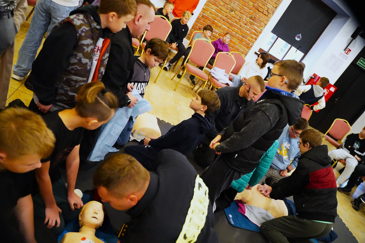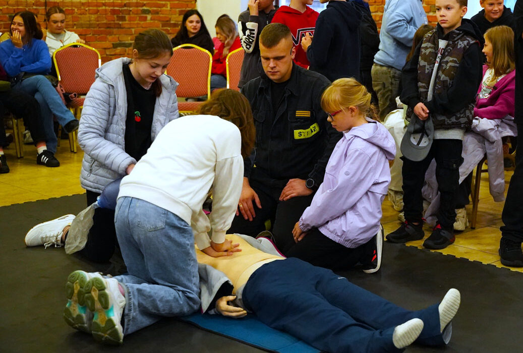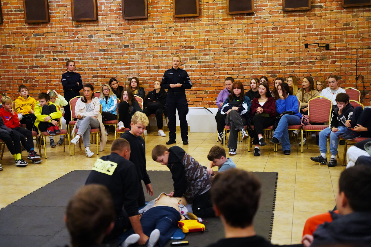 Młodzież ze szkół podstawowych i średnich wzięła udział w ćwiczeniach praktycznych i merytorycznych z udzielania pierwszej pomocy, użycia defibrylatora AED oraz innych czynności dotyczących ochrony zdrowia a także rozmów na temat zagrożeń jakie czyhają w życiu codziennym oraz tych z cyberprzestrzeni.