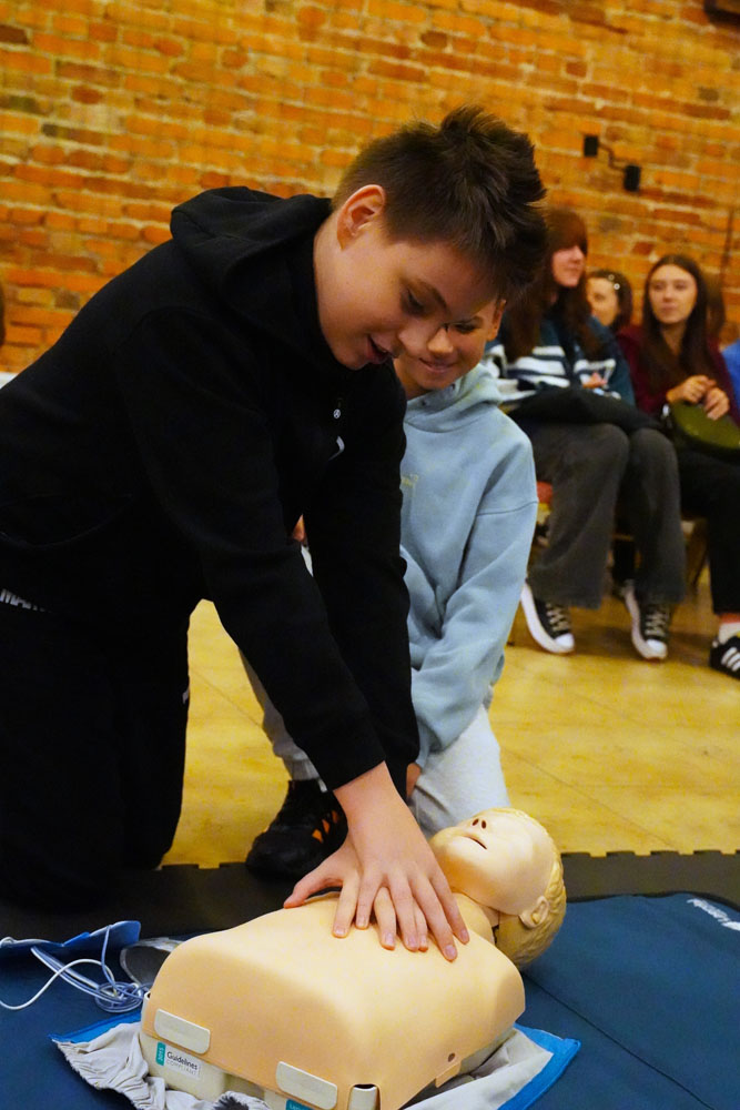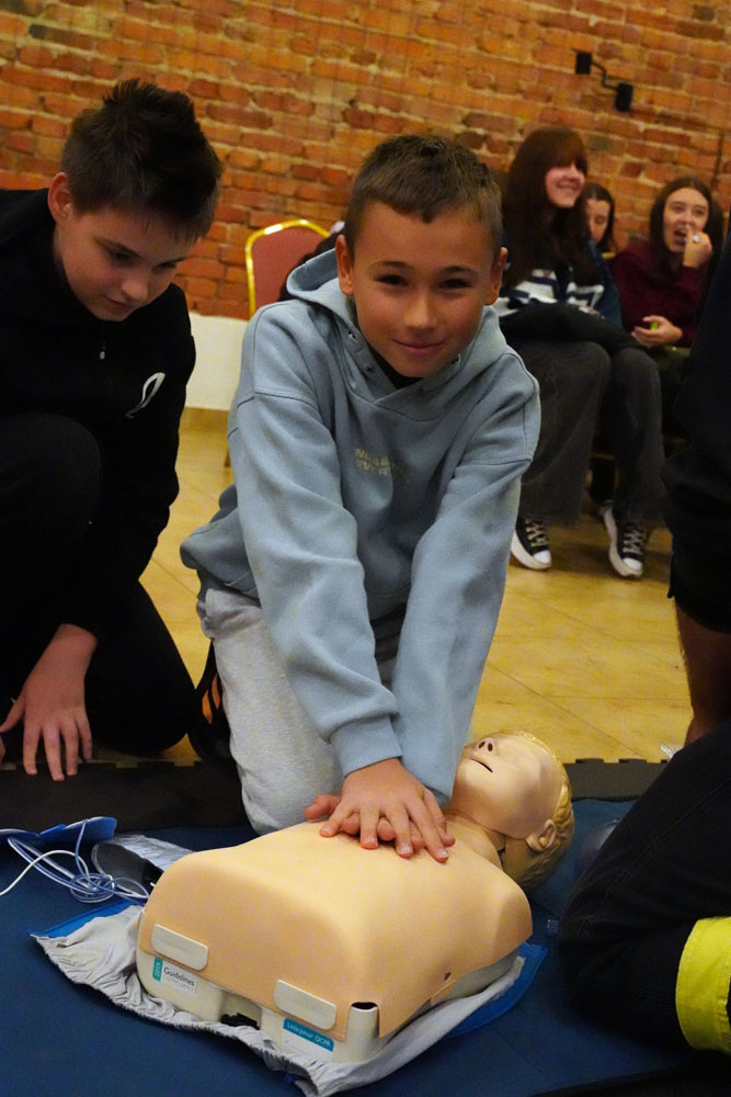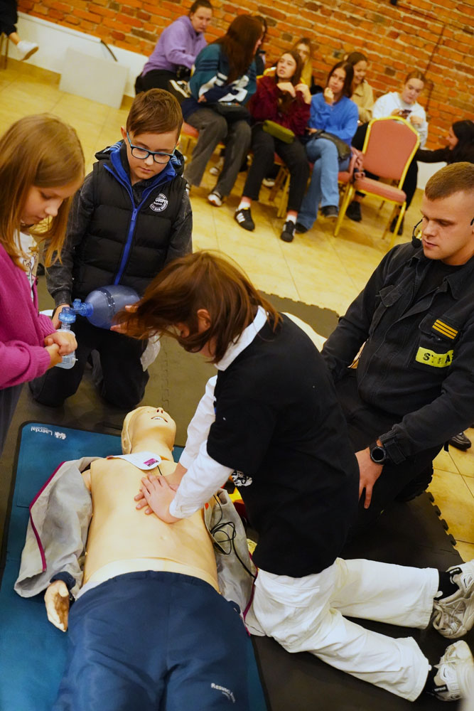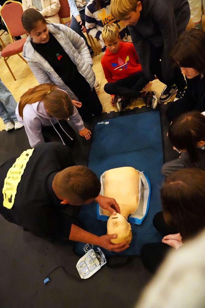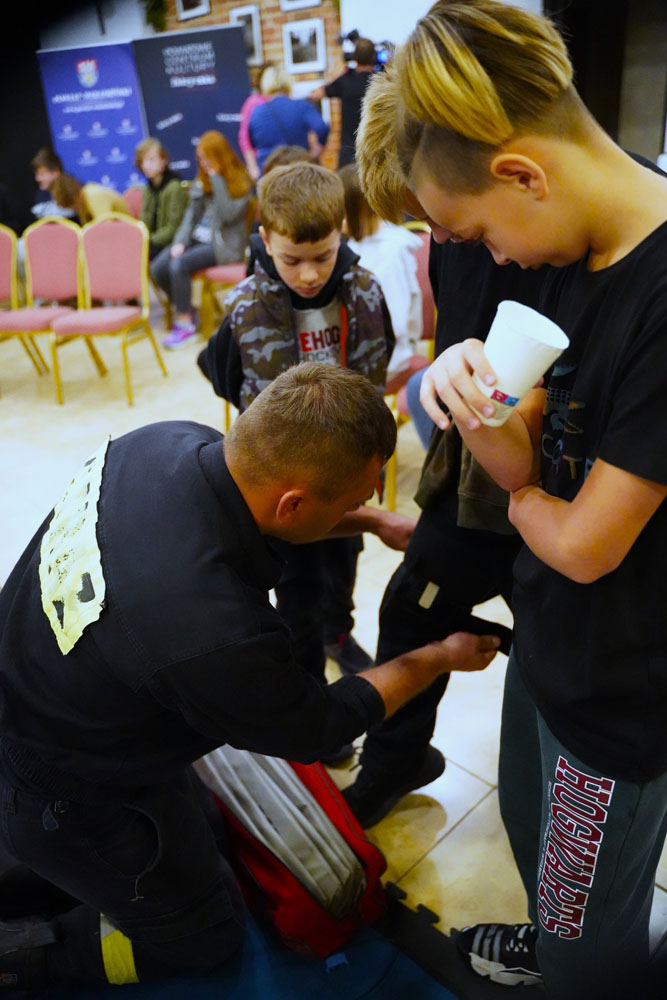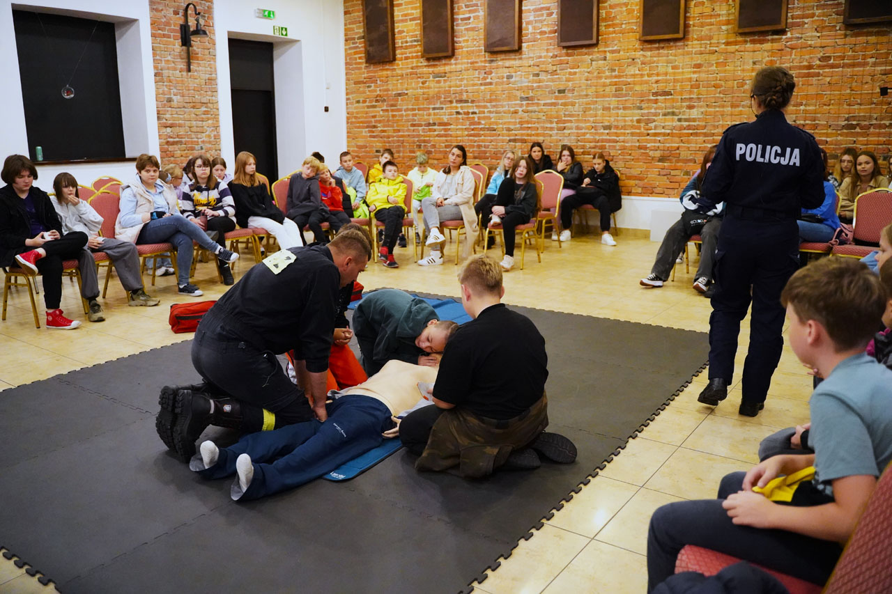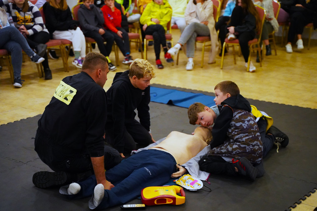 Młodzież ze szkół podstawowych i średnich wzięła udział w ćwiczeniach praktycznych i merytorycznych z udzielania pierwszej pomocy, użycia defibrylatora AED oraz innych czynności dotyczących ochrony zdrowia a także rozmów na temat zagrożeń jakie czyhają w życiu codziennym oraz tych z cyberprzestrzeni.