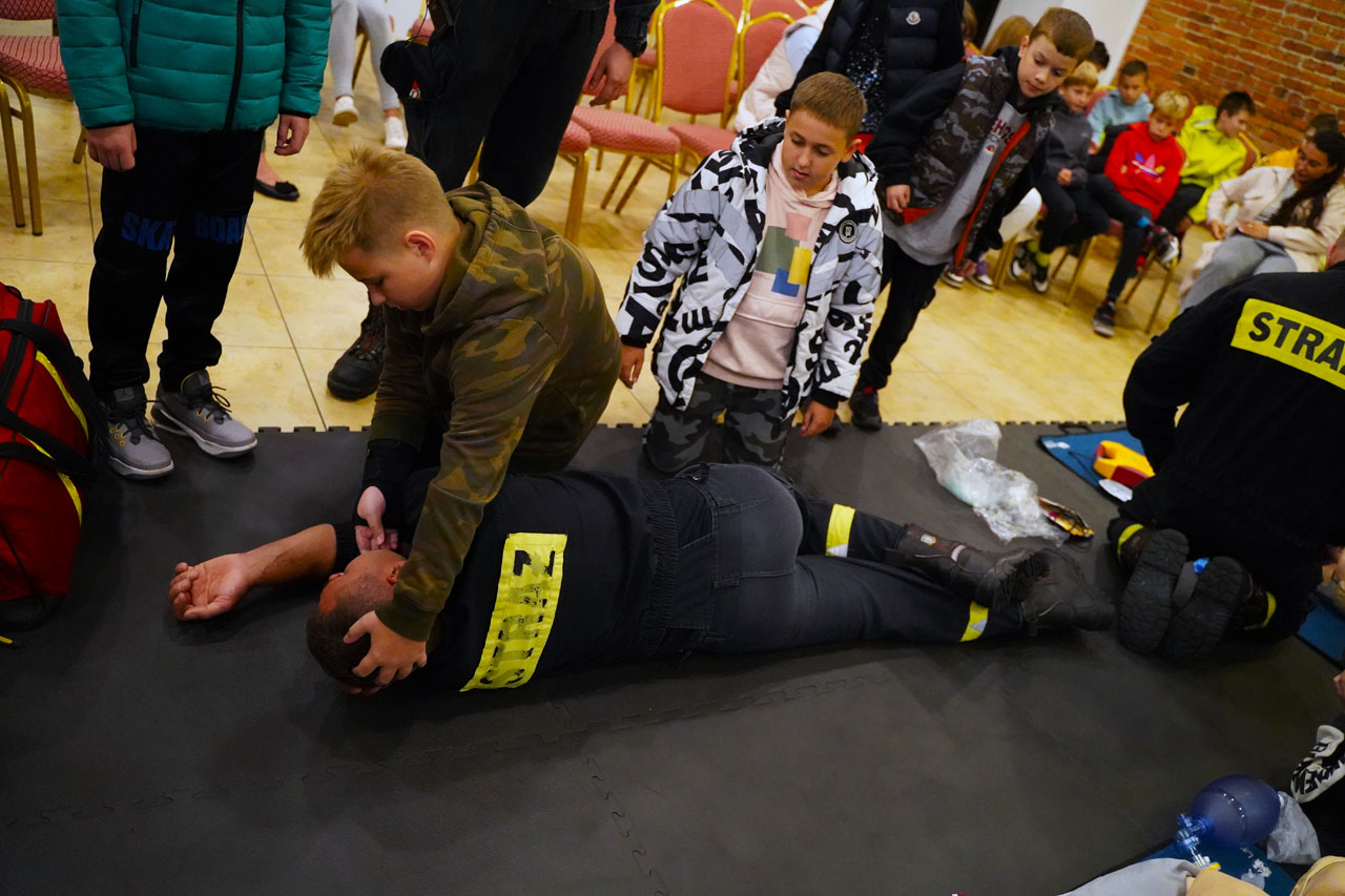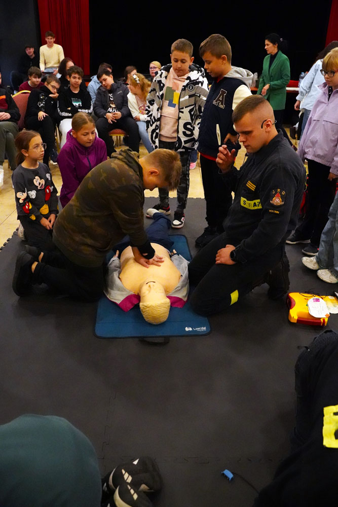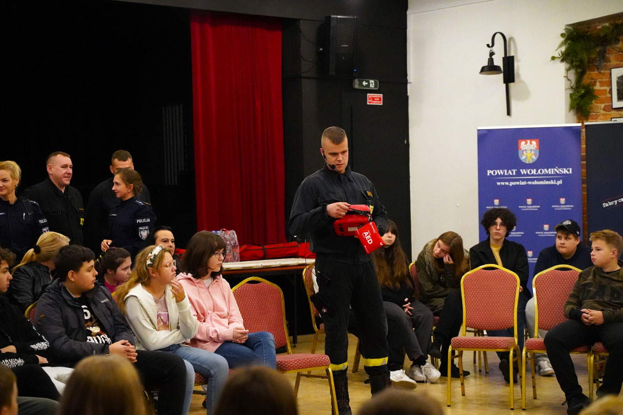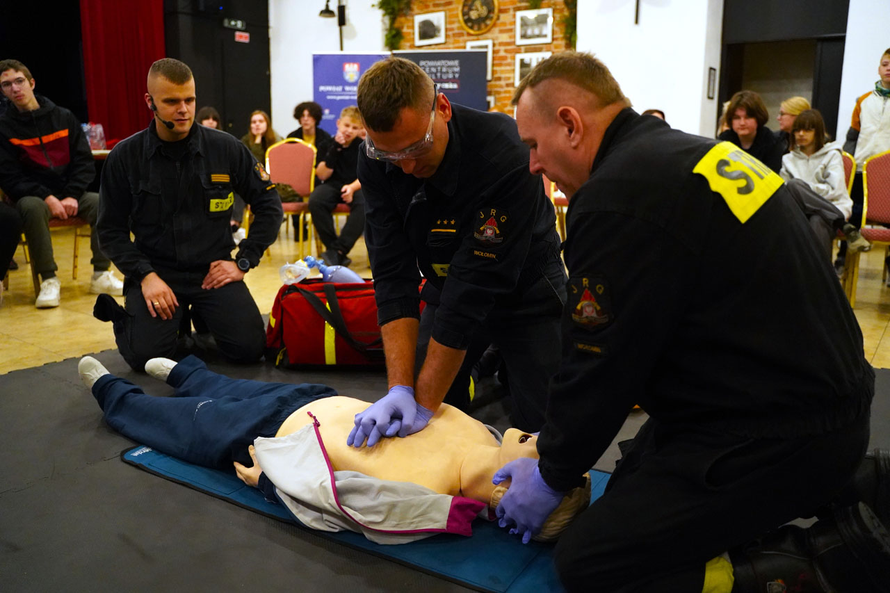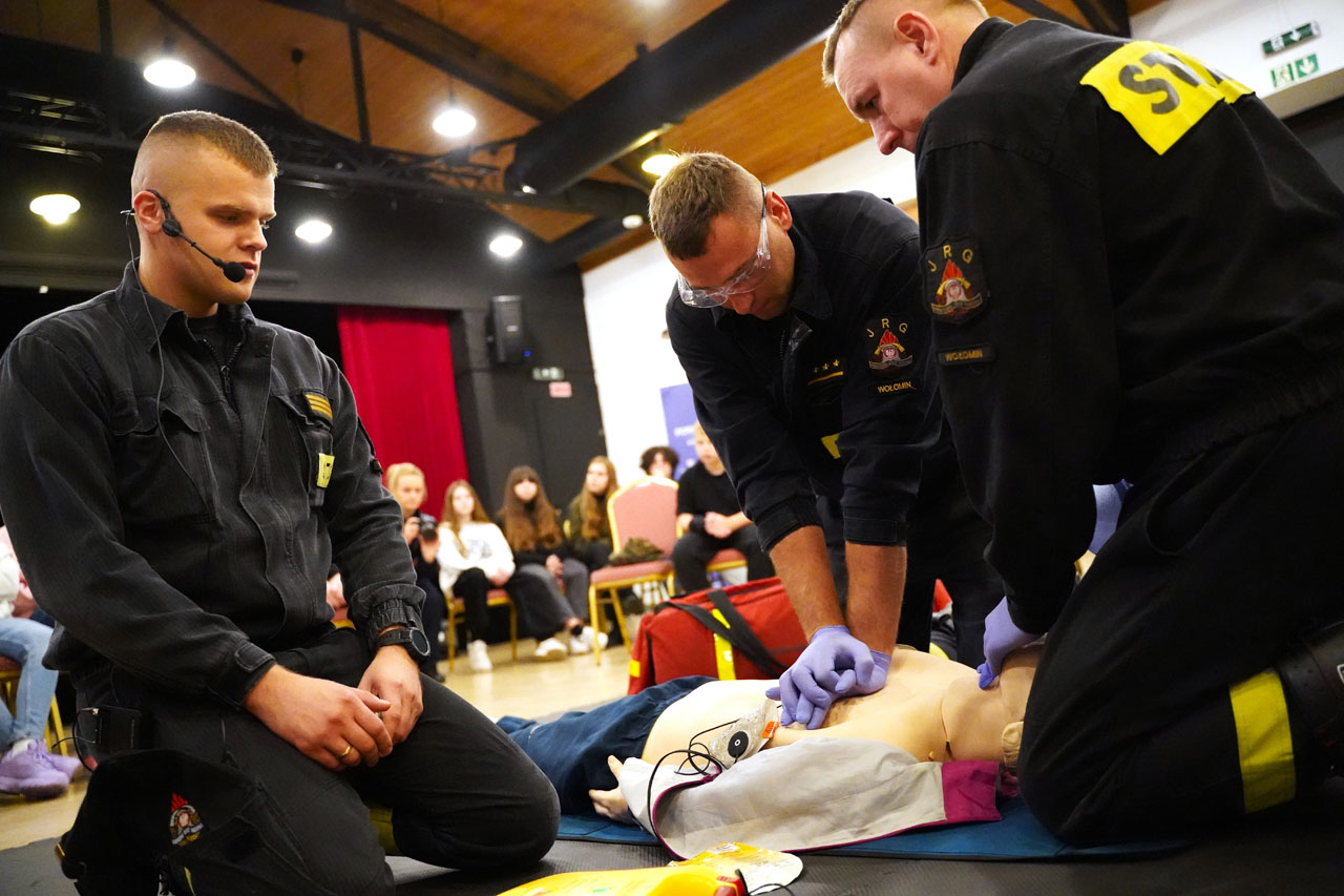 Młodzież ze szkół podstawowych i średnich wzięła udział w ćwiczeniach praktycznych i merytorycznych z udzielania pierwszej pomocy, użycia defibrylatora AED oraz innych czynności dotyczących ochrony zdrowia a także rozmów na temat zagrożeń jakie czyhają w życiu codziennym oraz tych z cyberprzestrzeni.