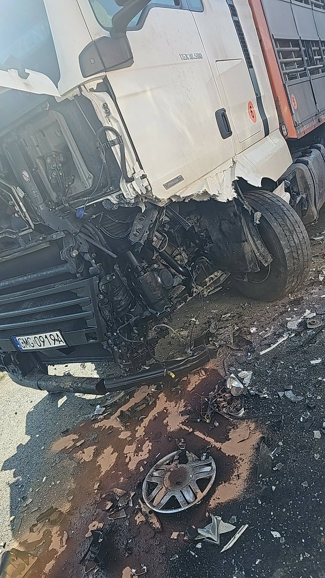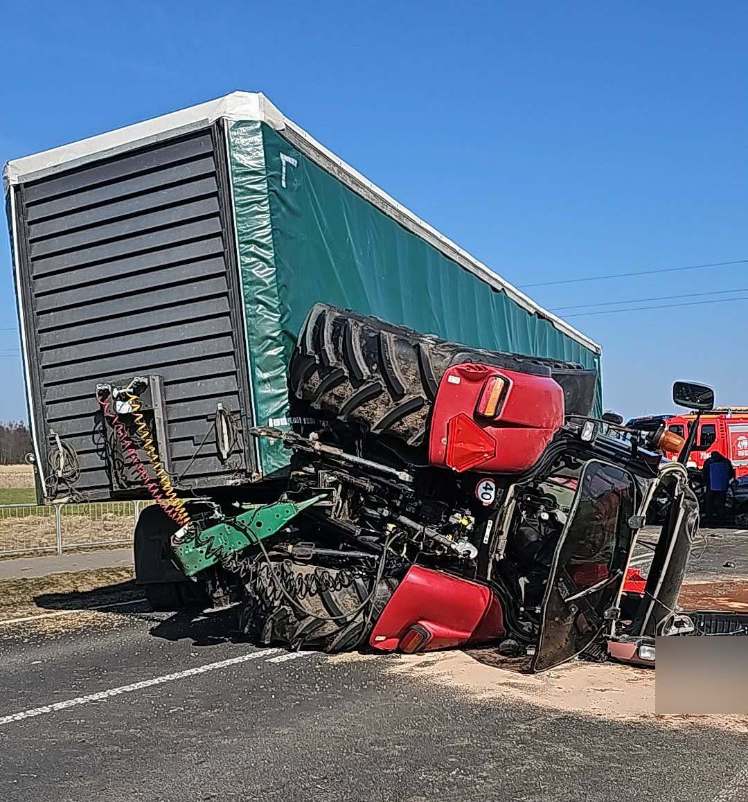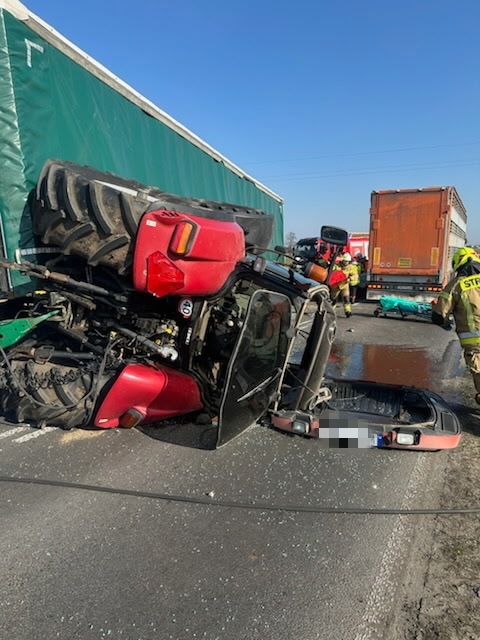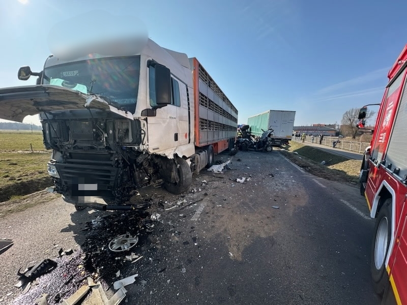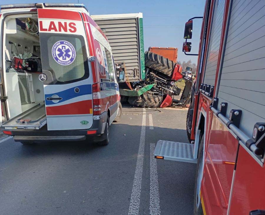 Fatalny manewr 80-latka. Wyprzedzał ciągnik rolniczy i doprowadził do czołowego zderzenie z ciężarówką. Trzy osoby trafiły do szpitala.