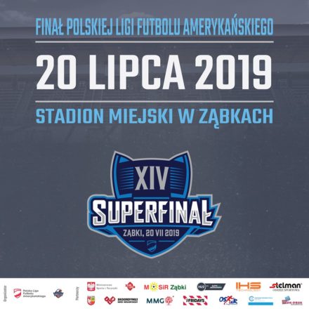 Polska Liga Futbolu Amerykańskiego zaprasza na XIV Super Finał 20 lipca Stadion Dozbud Arena w Ząbkach, ul. Słowackiego 21.
