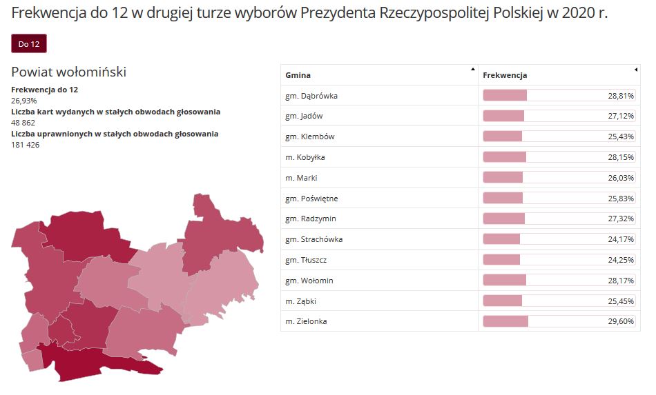 W drugiej turze wyborów prezydenckich frekwencja do godziny 12:00 wynosiła w powiecie wołomińskim 26,93%