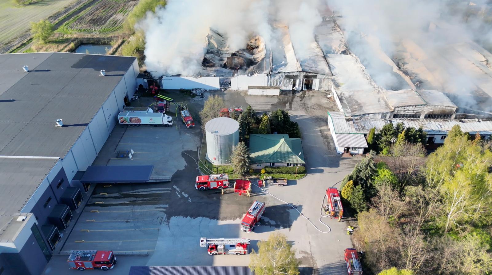 Skala pożaru była ogromna. Ogień pochłaniał kolejne części hali, nad miejscowością unosiły się kłęby dymu widoczne z wielu kilometrów, a wysokie słupy ognia rozświetlały nocne niebo. Zdjęcia z akcji pokazują prawdziwe piekło – dachy zawalające się pod naporem ognia, hale w płomieniach i dziesiątki strażackich wozów walczących z żywiołem.
