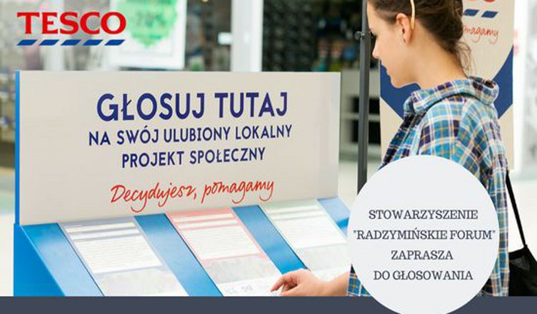 W dniach 21 stycznia – 17 lutego 2019 r. można oddawać głosy na dwa projekty w programie „Decydujesz, pomagamy” firmy Tesco i Fundacji Tesco Dzieciom. W tym roku do II etapu programu zakwalifikowały się: projekt „Zadbaj o swoje zdrowie” Fundacji Kreatywni oraz projekt „Mogę, chcę i nie obawiam się” Stowarzyszenia Radzymińskie Forum. Głosować można