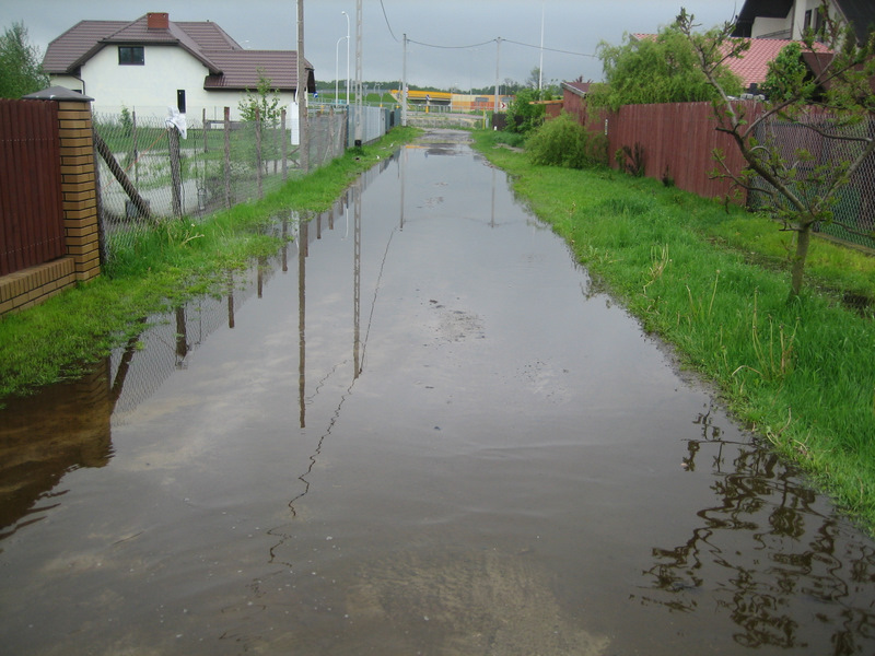 Podniesiony podczas budowy teren (o 3 ok. metry) i brak rowów melioracyjnych, powoduje podczas opadów podtopienia. W przypadku ulicy Akacjowej brak rowów melioracyjnych to tylko jeden z wielu błędów, które należałoby wytknąć inwestorom. Skandaliczne wjazdy na poszczególne ulice, przewody elektryczne leżące luzem w zbiornikach wodnych – wymieniać można bez końca.