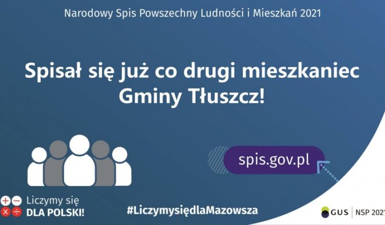 Gmina Tłuszcz ma największy odsetek spisanych mieszkańców w Narodowym Spisie Powszechnym Ludności i Mieszkań spośród gmin wchodzących w skład powiatu wołomińskiego. Według danych na dzień 13 lipca 2021r. spisał się już co drugi mieszkaniec gminy. Najczęściej spisujemy się podczas kontaktu z rachmistrzem lub poprzez samospis.