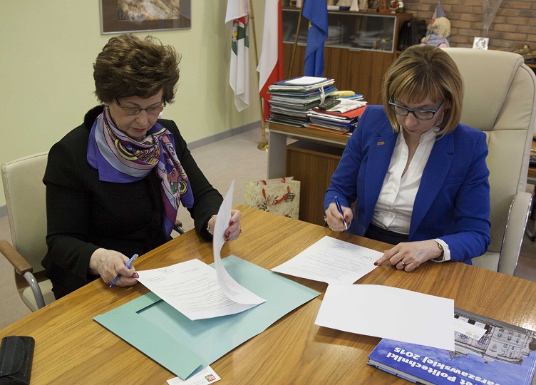 16 marca, burmistrz Wołomina Elżbieta Radwan i bziekan Wydziału Geodezji i Kartografii Politechniki Warszawskiej prof. dr hab. Alina Maciejewska podpisały porozumienie o współpracy pomiędzy Gminą Wołomin a Politechniką Warszawską.