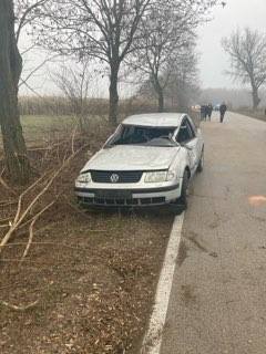 👉Na łuku drogi nie zachowała szczególnej ostrożności i nie dostosowała prędkości do panujących warunków drogowych, w wyniku czego pojazd zjechał do przydrożnego rowu.