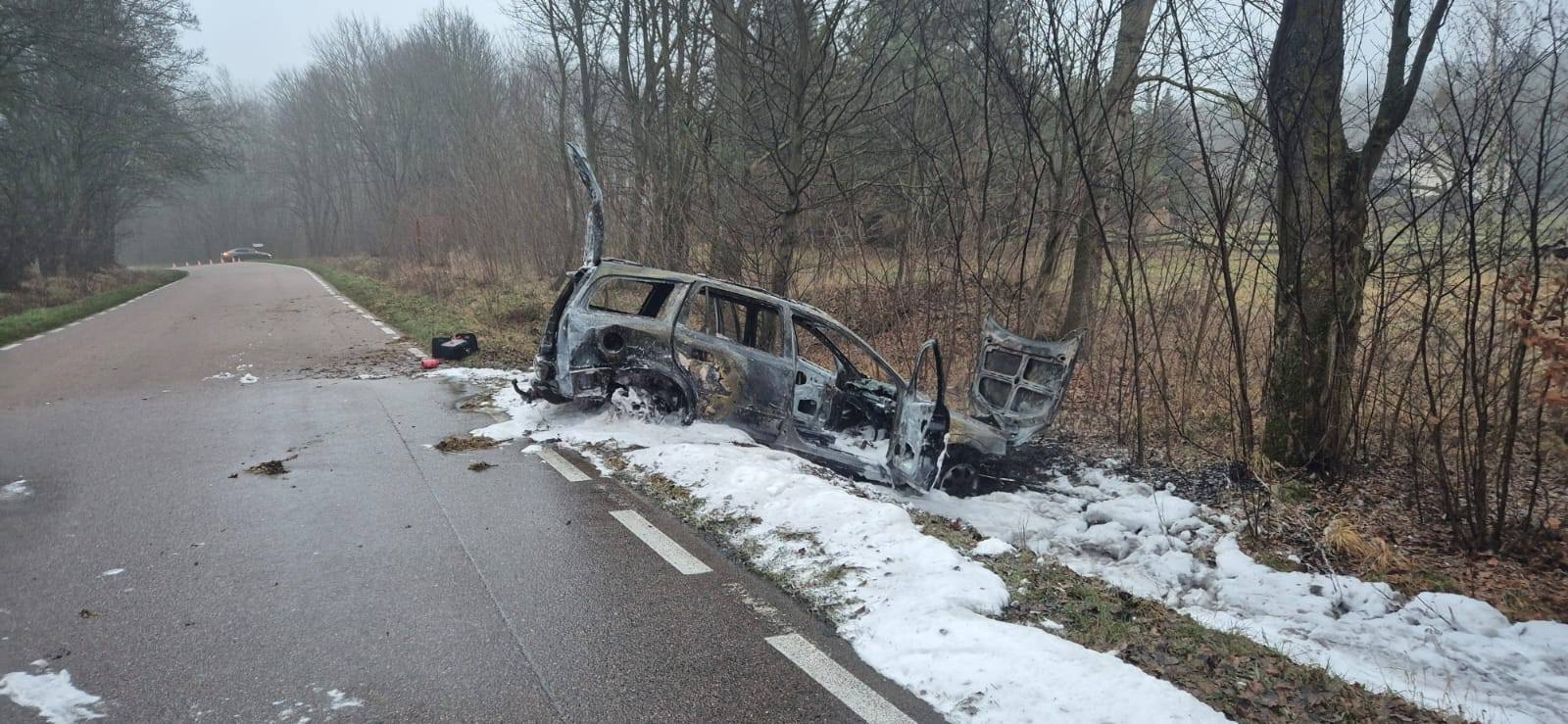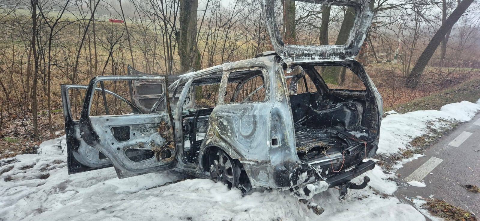 👉Samochód uderzył w skarpę i doszło do samozapłonu pojazdu.