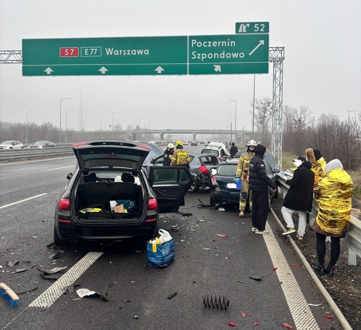 Około godziny 13:00 na trasie S7, na wysokości miejscowości Poczernin w kierunku Warszawy, doszło do zdarzenia drogowego z udziałem 4 pojazdów.