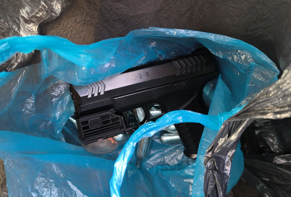 Jak ustalili policjanci, mężczyzna pistolet na kulki ukrył w samochodzie firmowym. Kryminalni dotarli do auta i wszystko zabezpieczyli.