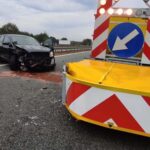 Do pierwsze groźnego zdarzenia drogowego doszło na trasie S8 w Lucynowie około godziny 6.30 na pasie ruchu w kierunku Białegostoku. Ze wstępnych ustaleń policjantów ruchu drogowego wynika, że kierująca nissanem mieszkanka powiatu wyszkowskiego nieprawidłowo wykonała manewr omijania unieruchomionego pojazdu pełniącego funkcję znaku drogowego informującego o zwężeniu jezdni do jednego pasa. Kobieta uderzyła w tylny lewy narożnik pojazdu służby drogowej w wyniku czego straciła panowanie nad osobówką i uderzyła w bariery energochłonne. Nissan zatrzymał się prostopadle do osi jezdni. Następnie kierowca seata, który jechał bezpośrednio za mieszkanką powiatu wyszkowskiego, aby uniknąć uderzenia w nissana wjechał pomiędzy osobówkę, a pojazd służby drogowej w wyniku czego doszło do uszkodzenia karoserii. Do szpitala została ranna i przetransportowana 51-latka z nissana.