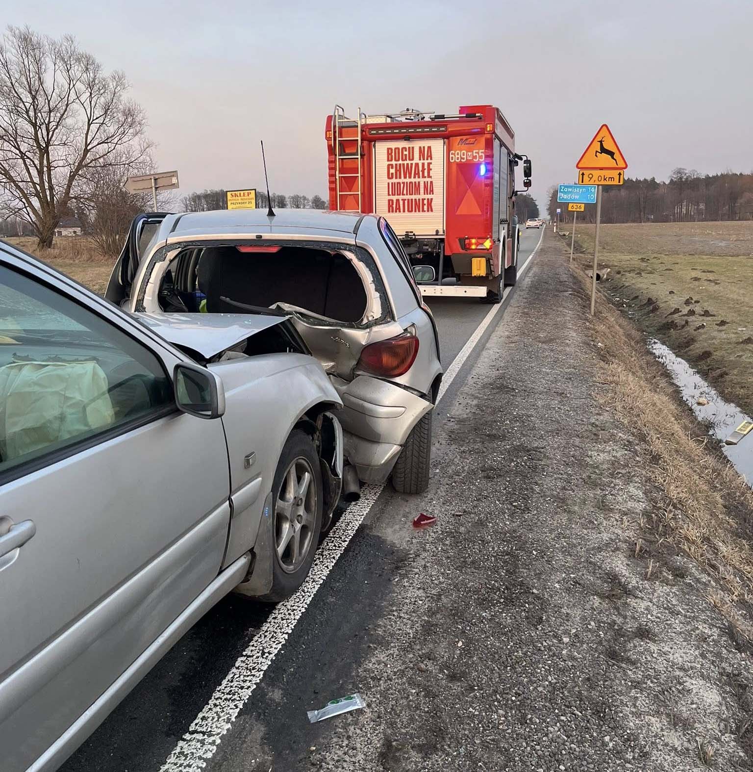 Groźne zderzenie na DW636. Rozbite auta na trasie w Postoliskach.