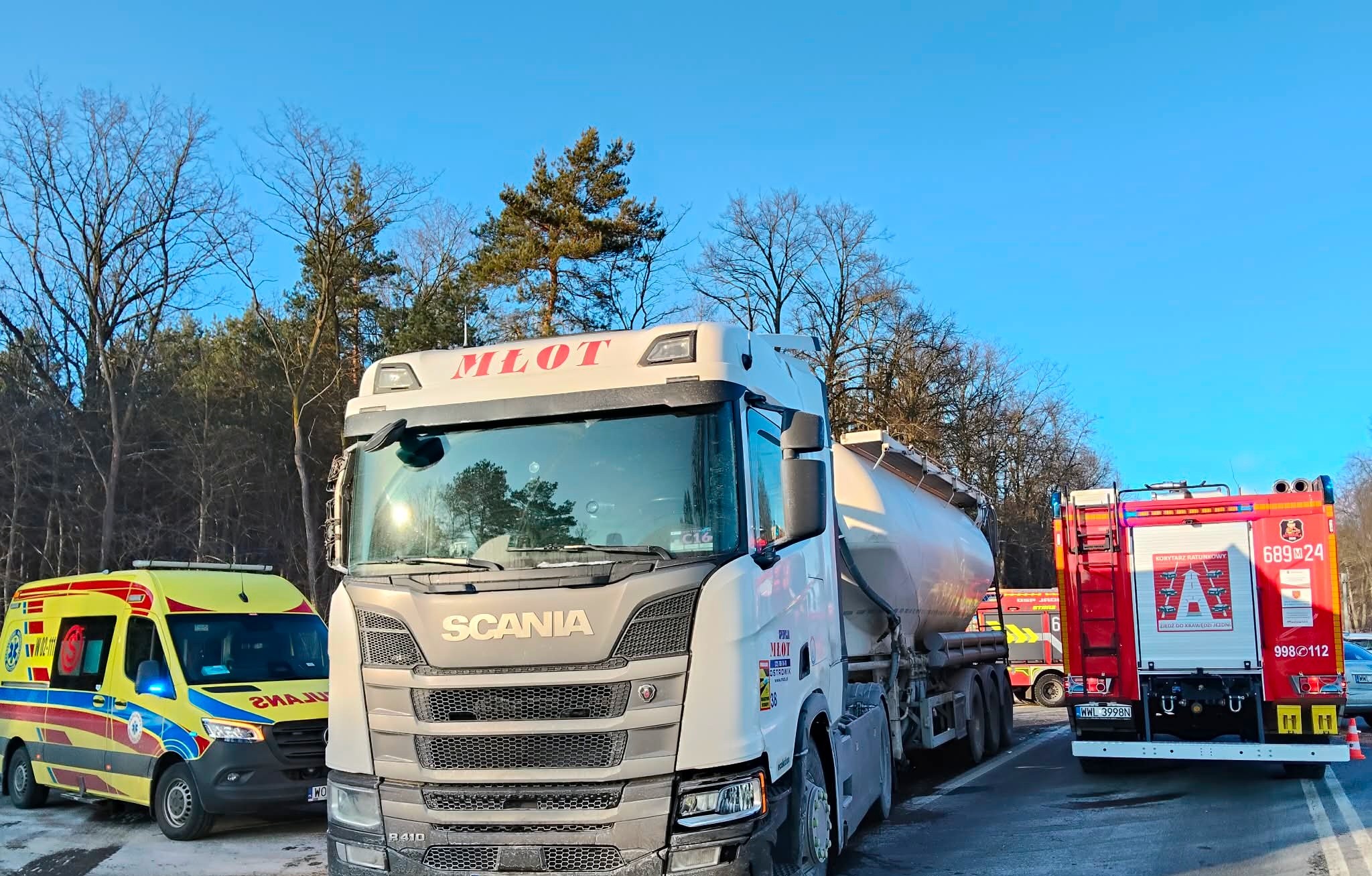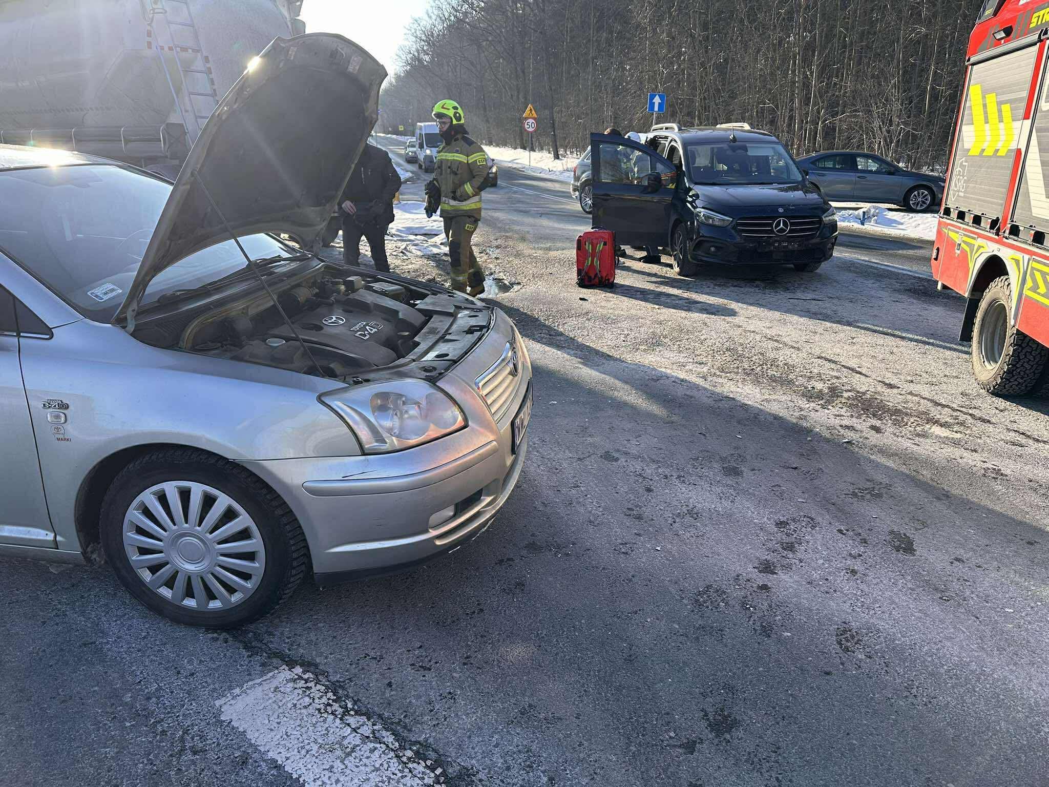 Chwile napięcia i strachu na drodze w miejscowości Zawiszyn. W poniedziałkowe popołudnie, 9 lutego 2026 roku o godzinie 14:16, doszło tam do poważnego wypadku drogowego z udziałem trzech pojazdów – dwóch samochodów osobowych oraz ciężarówki.