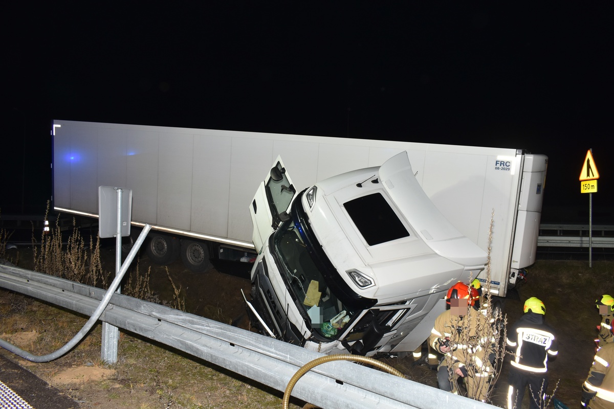 Groźny nocny wypadek na S8: Ciężarówka w rowie, kierowca ewakuowany