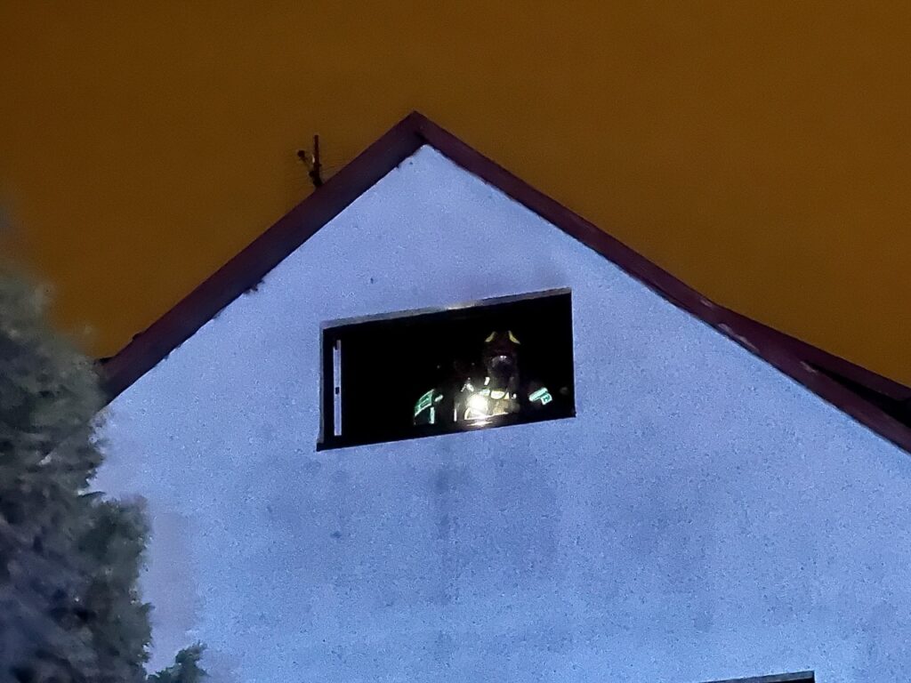Późnym wieczorem we wtorek 18 kwietnia ogień pojawił się na poddaszu dużego budynku „jednorodzinnego” w Markach. Gęsty dym i płomienie zaczęły wydobywać się przez niewielkie okna. Będący w środku lokatorzy próbowali się ratować.
