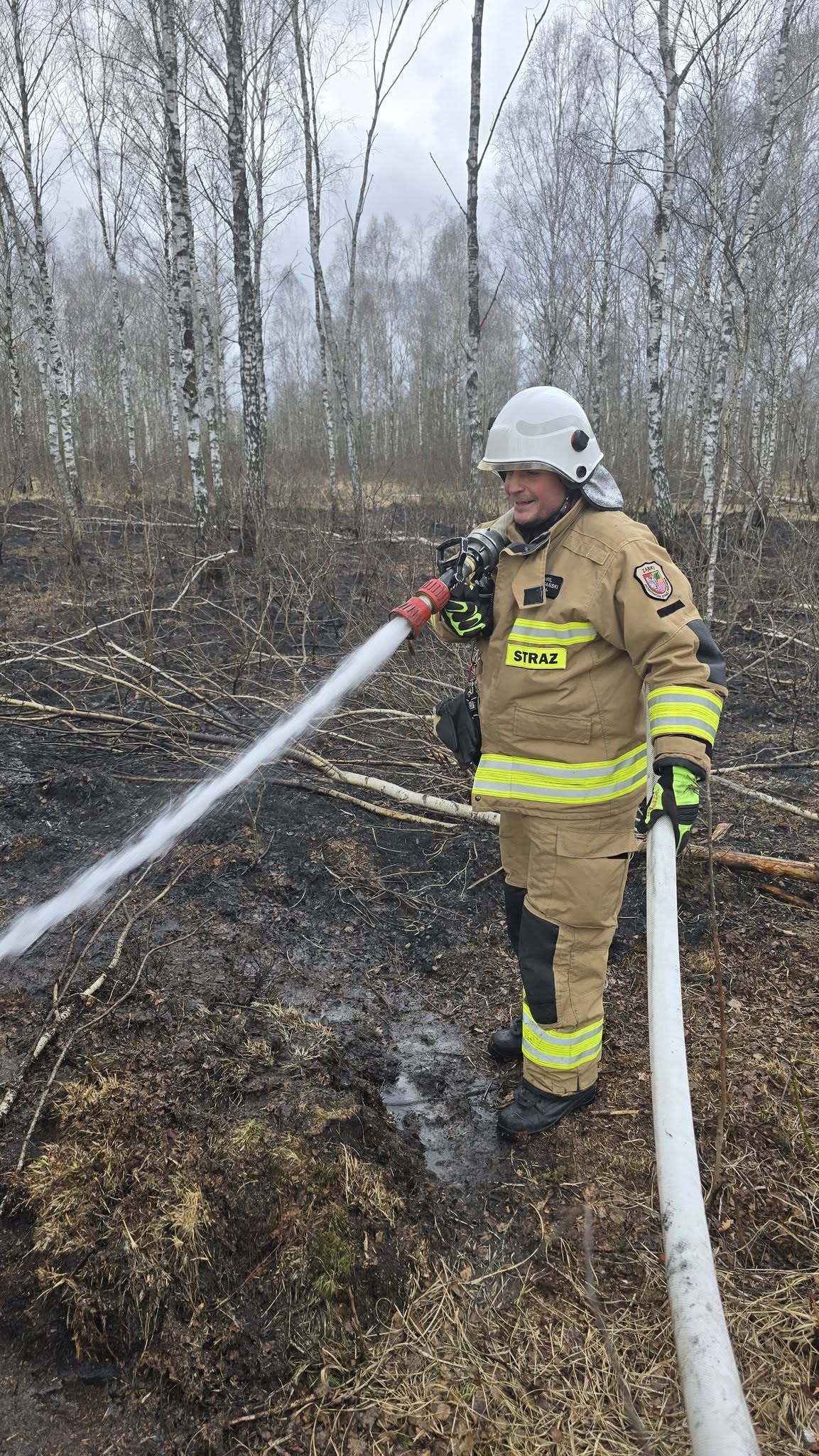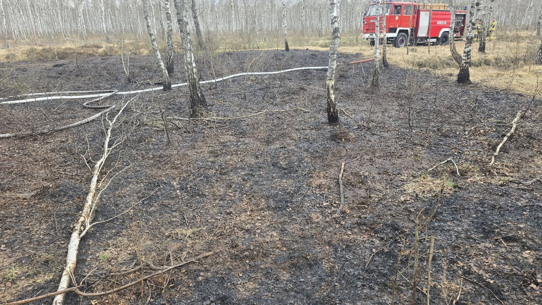 Na pierwszy rzut oka sytuacja może wydawać się opanowana – spalone fragmenty ściółki, brak wysokich płomieni. Jednak rzeczywistość jest znacznie bardziej dramatyczna. Tego typu pożary „żyją” pod powierzchnią ziemi. Ogień przemieszcza się w warstwach torfu, niewidoczny dla oka, by w każdej chwili ponownie wybuchnąć z pełną siłą.