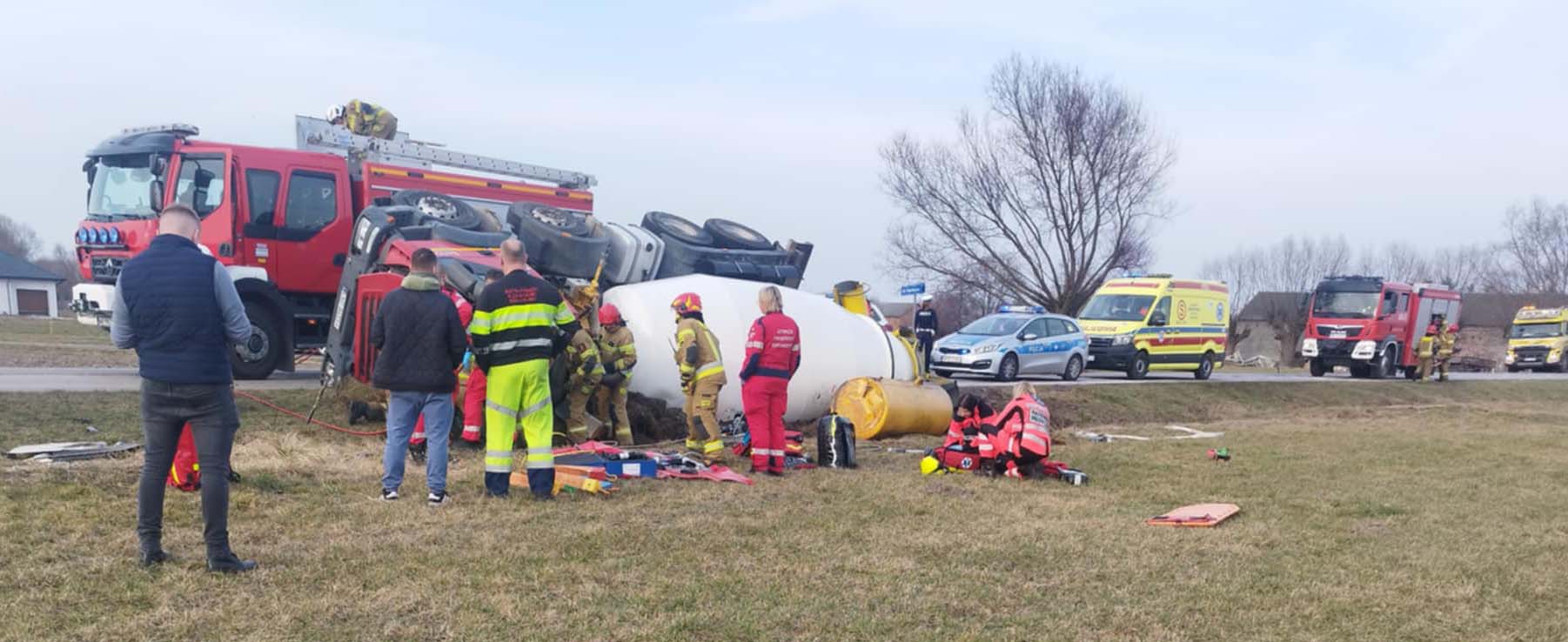 Wypadki z udziałem ciężarówek są szczególnie niebezpieczne ze względu na masę pojazdu oraz możliwe skutki dla innych uczestników ruchu drogowego. W takich sytuacjach służby ratunkowe muszą działać w warunkach podwyższonego ryzyka – zagrożeniem mogą być m.in. wycieki paliwa, niestabilność pojazdu czy trudny dostęp do osób poszkodowanych.