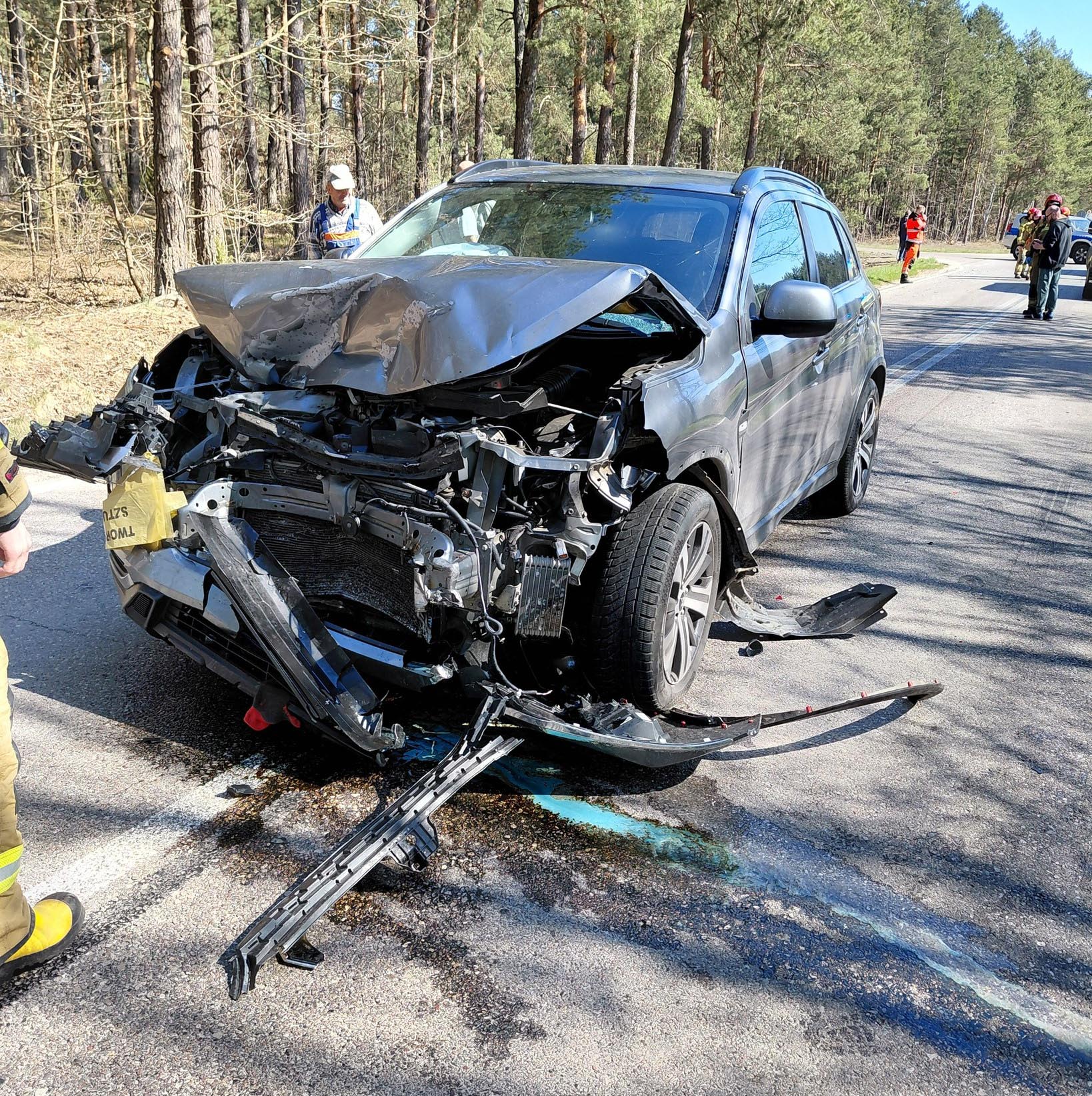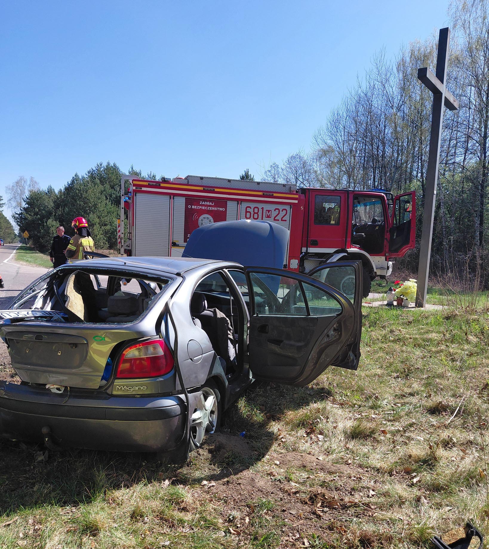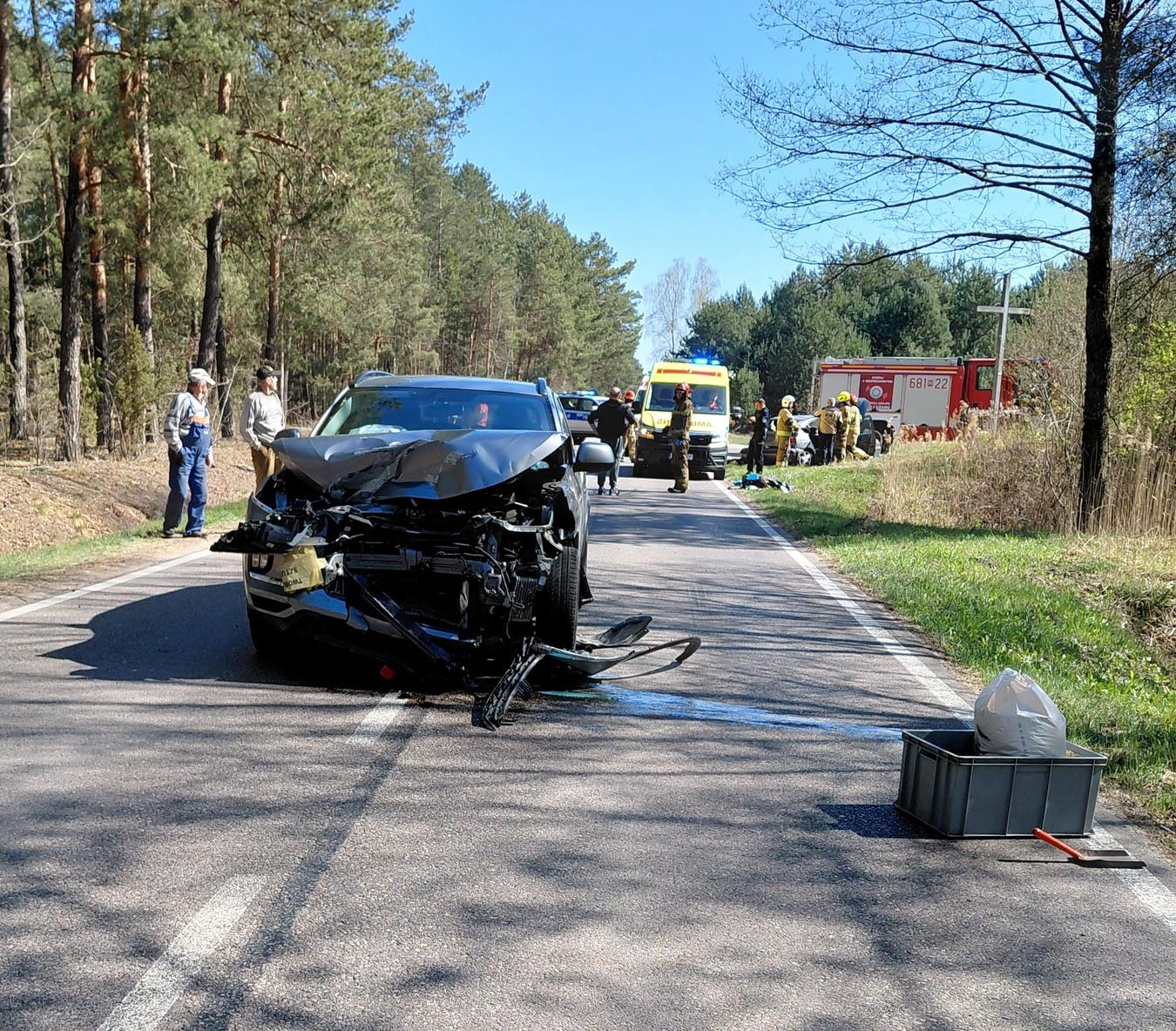 Siła uderzenia była ogromna. Jeden z samochodów został doszczętnie rozbity z przodu – elementy karoserii zostały wyrwane, a silnik poważnie uszkodzony. Drugi pojazd wypadł z jezdni i zatrzymał się w przydrożnym rowie. Na miejscu widoczne były rozrzucone części aut, a skala zniszczeń wskazuje na bardzo gwałtowny przebieg zdarzenia.