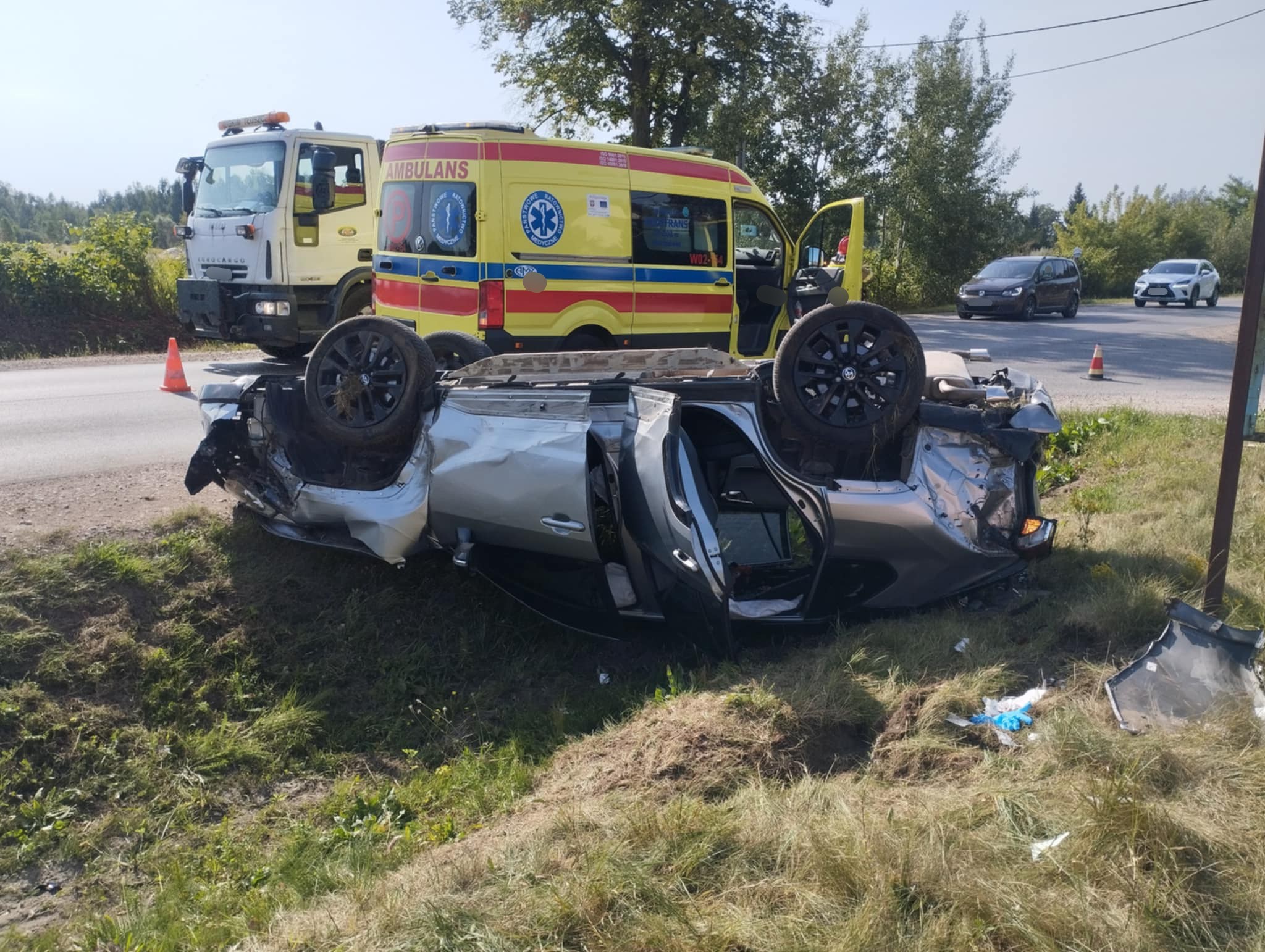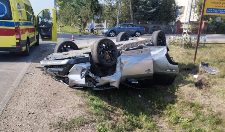 Groźny wypadek w Tłuszczu. Dachowanie samochodu osobowego