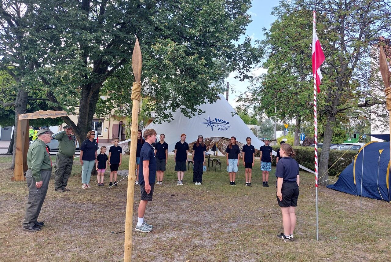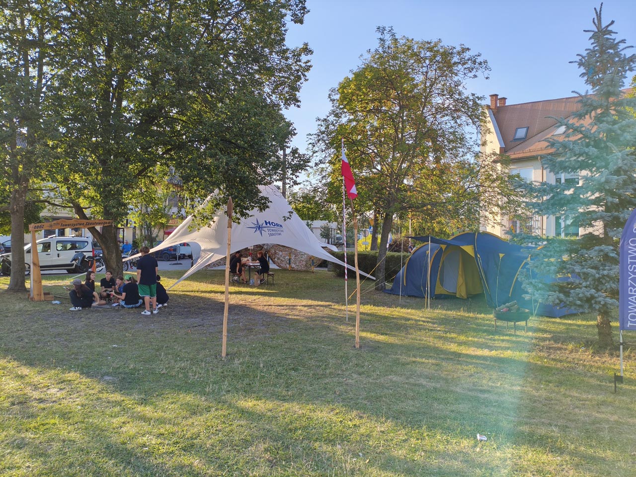 Na potrzeby Pikniku przygotowano miniaturowe obozowisko harcerskie, które w pełni oddawało atmosferę letniego życia skautowego. W jego skład wchodziły m.in. świetlica polowa typu „gwiazda” z centralnym masztem, ławkami i stołami, brama obozowa, banery promocyjne, maszt z flagą państwową (uroczyste podniesienie i złożenie flagi), stanowisko ogniskowe, namiot dekoracyjny z ekwipunkiem obrazującym codzienne życie harcerzy, fotościanka historyczna z motywem rycerskim (1000-lecie państwa polskiego), drewniany baner z napisem „Obóz Towarzystwa Skautowego HORN” oraz siatka maskująca jako element dekoracyjny.