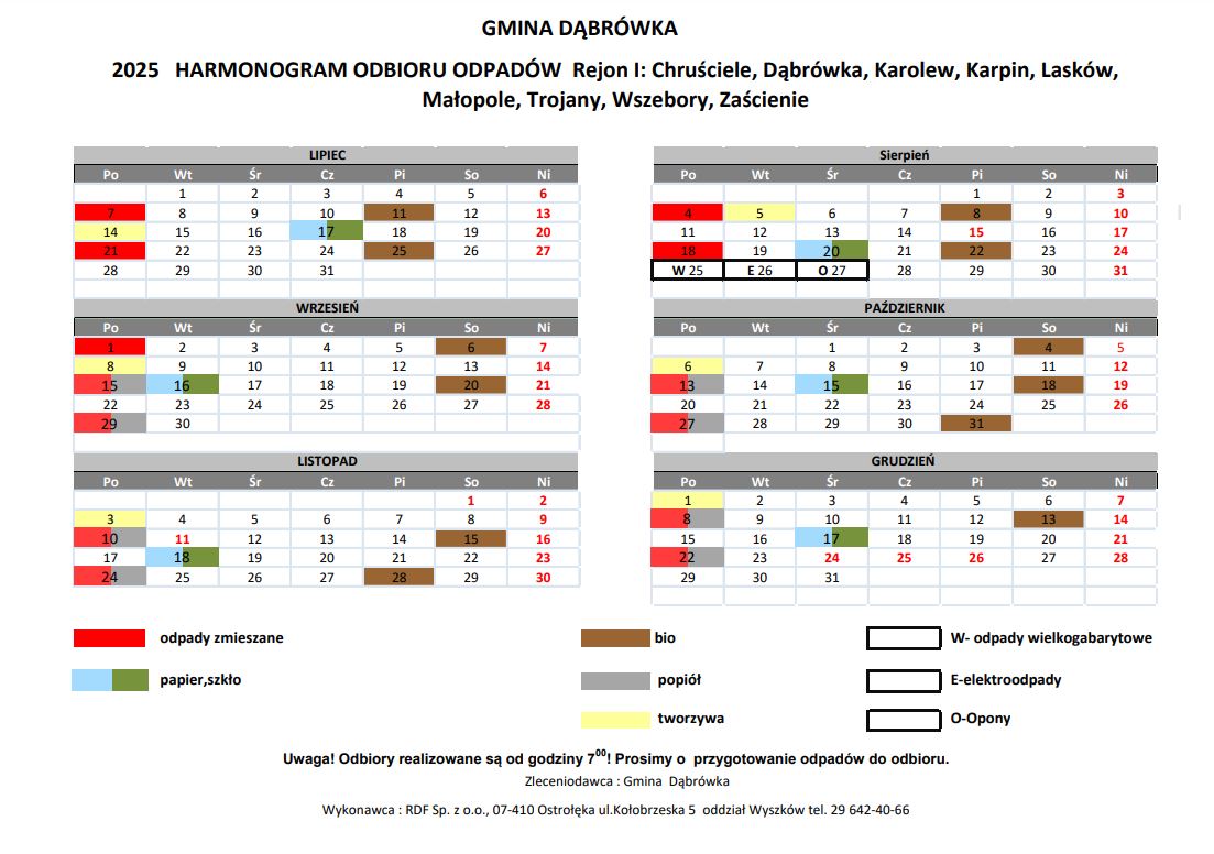 HARMONOGRAM będzie obowiązywał od lipca do grudnia 2025 r
