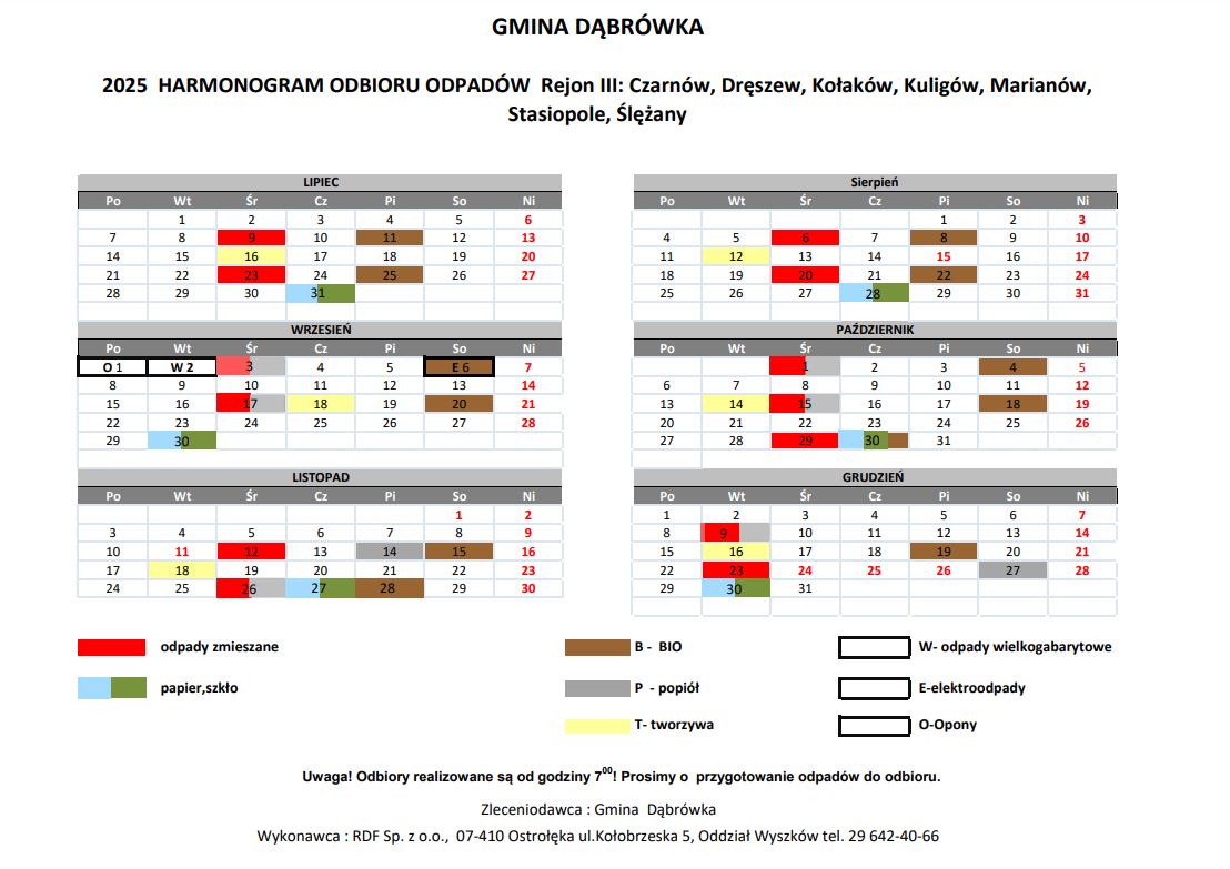 UG Dąbrówka podał harmonogram odbioru odpadów z terenu gminy.