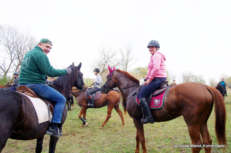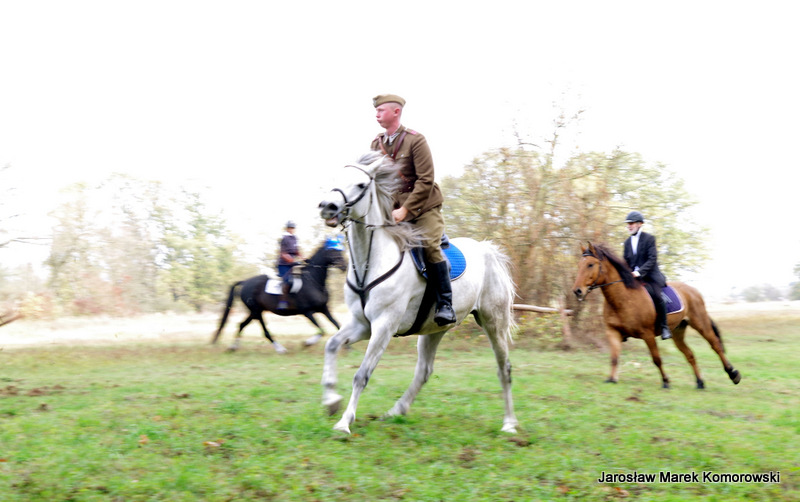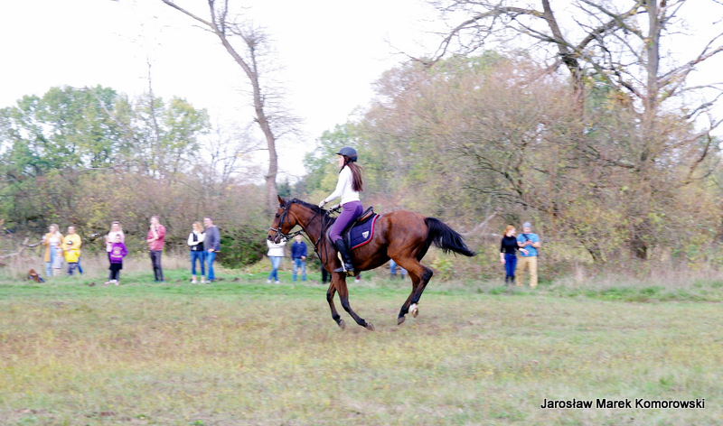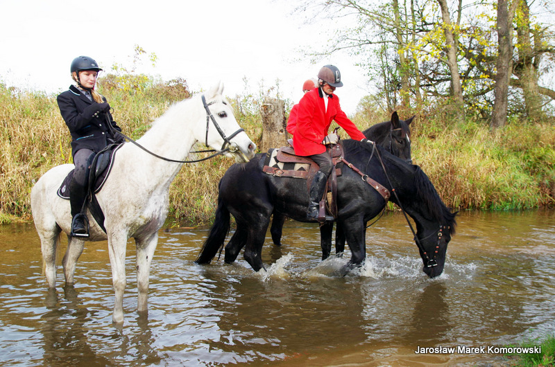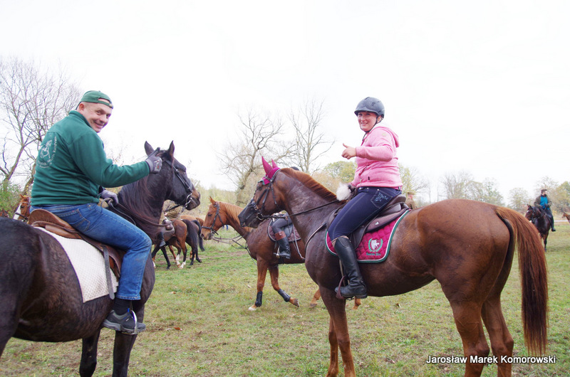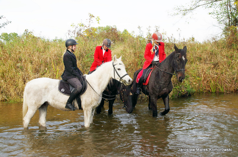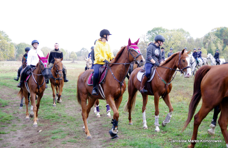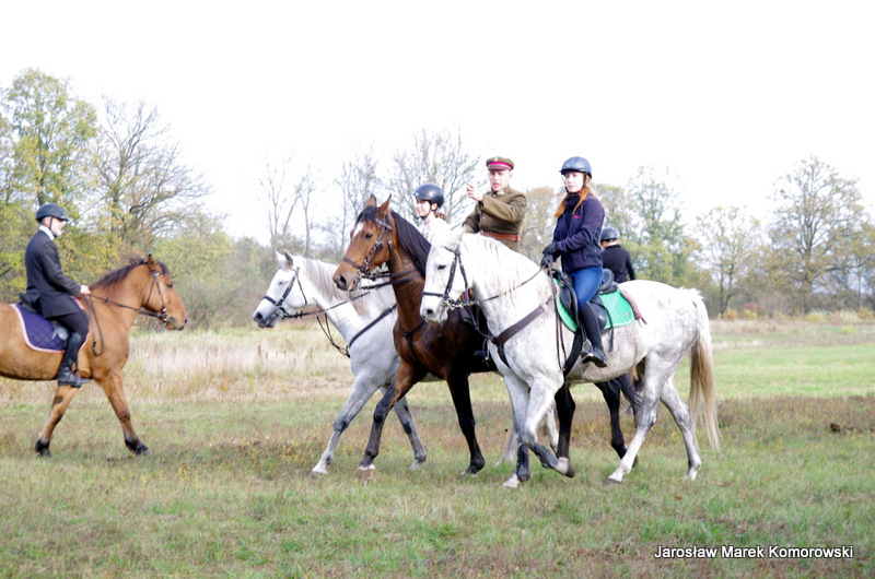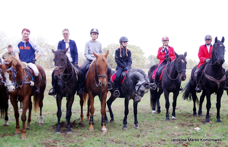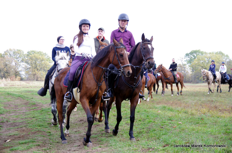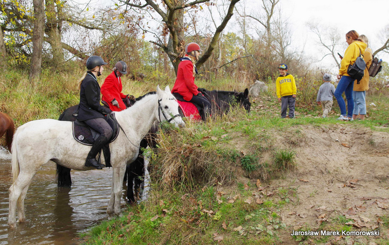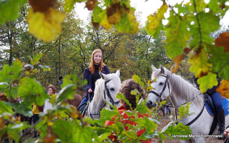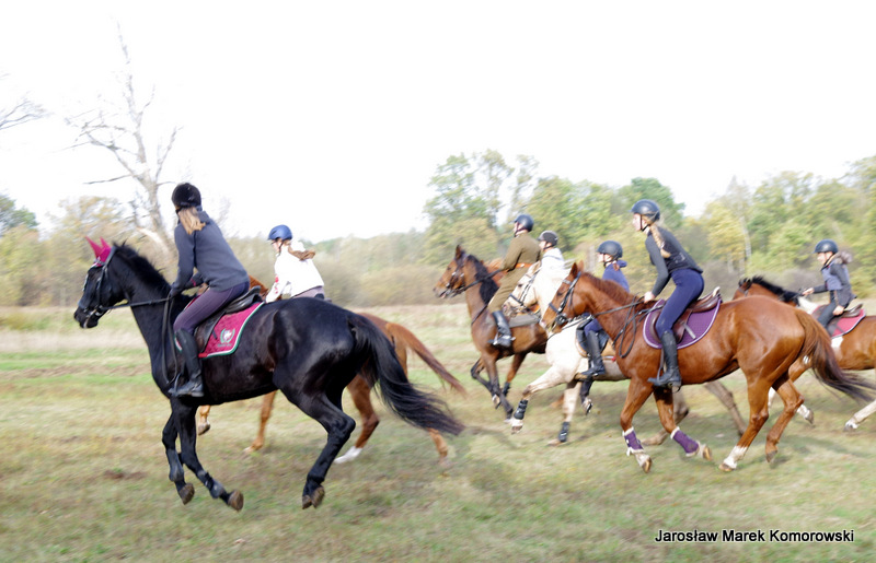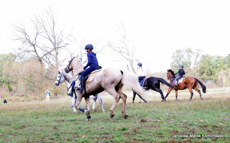 Wśród jeźdźców (Hubertus konny) urządzana jest natomiast tradycyjna gonitwa, która organizowana jest najczęściej na przełomie października i listopada. W trakcie biegu, uczestnicy konno ścigają tzw. Lisa, którym jest jeździec z ogonem przypiętym do lewego ramienia. Osoba, której uda się go zerwać ? wygrywa. Jako zwycięzca ma ona prawo wykonać rundę honorową wokół miejsca pogoni, i za rok sama ucieka jako lis. Często gonitwę poprzedza wspólny teren, który jest także swego rodzaju rozgrzewką dla wszystkich uczestników. Dla najmłodszych adeptów jeździectwa często organizowane są różnego rodzaju gry i zabawy, które polegają na odnalezieniu np. ukrytej lisiej kity. Zabawa kończy się wspólnym biesiadowaniem przy ognisku.