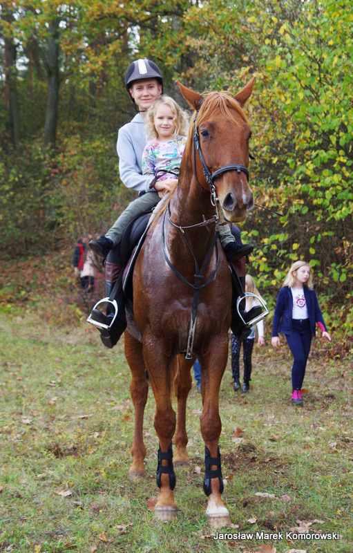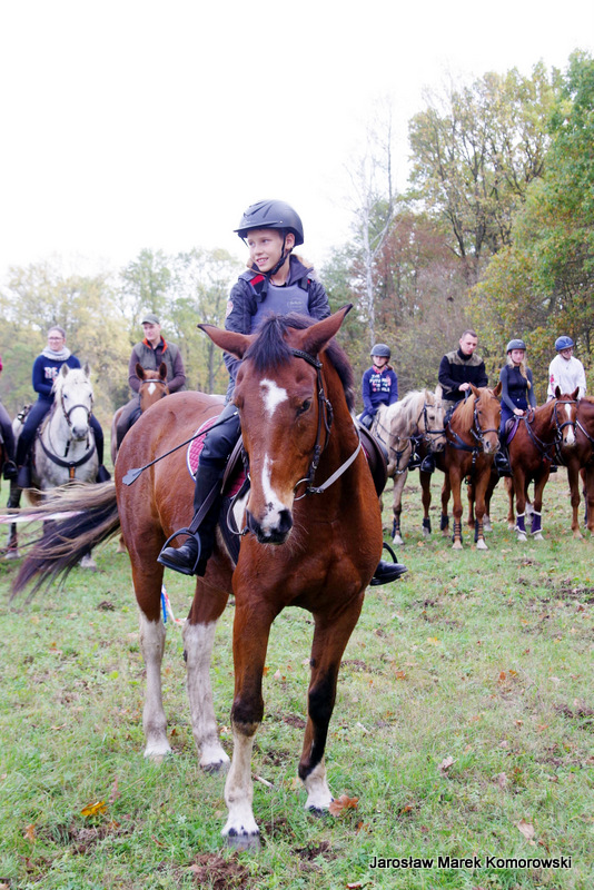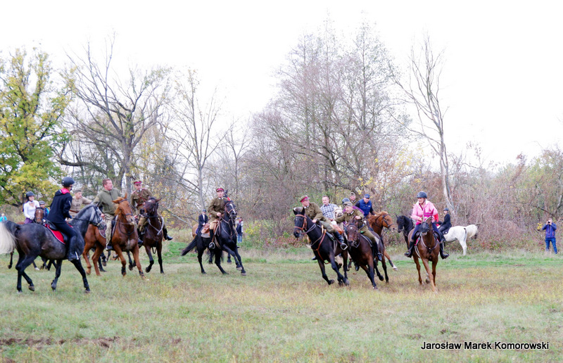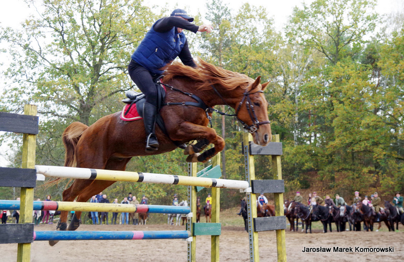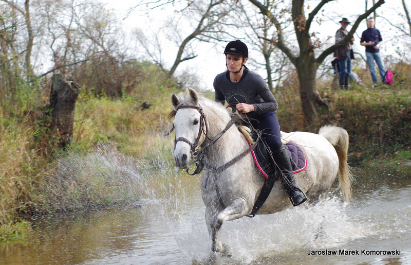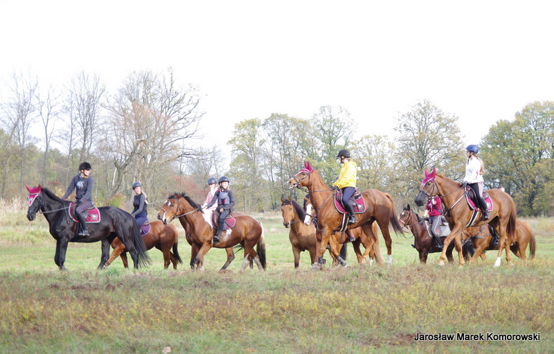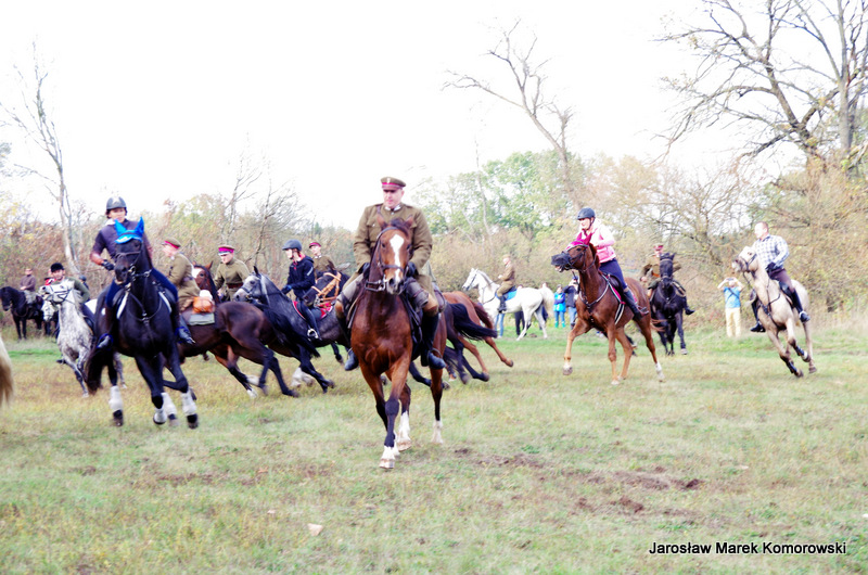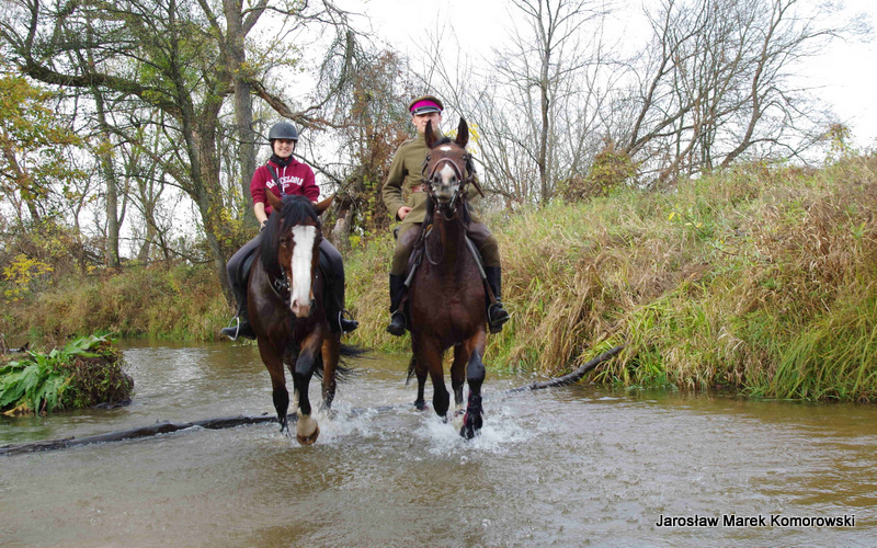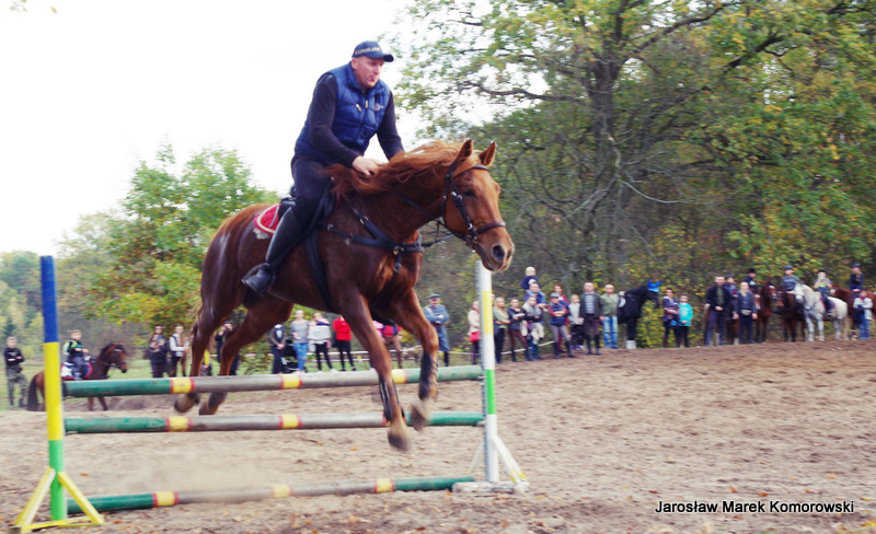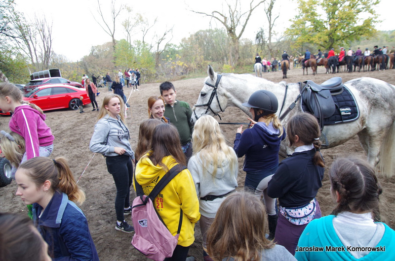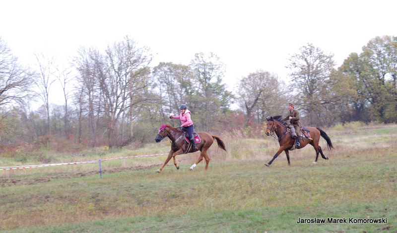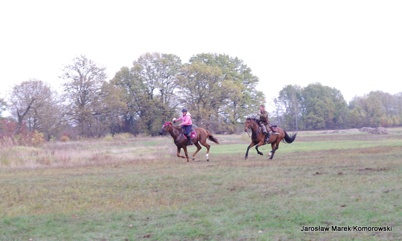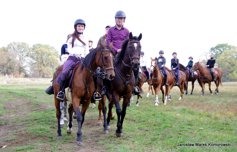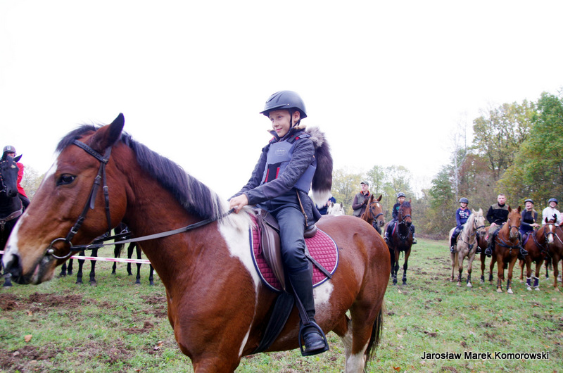 Wśród jeźdźców (Hubertus konny) urządzana jest natomiast tradycyjna gonitwa, która organizowana jest najczęściej na przełomie października i listopada. W trakcie biegu, uczestnicy konno ścigają tzw. Lisa, którym jest jeździec z ogonem przypiętym do lewego ramienia. Osoba, której uda się go zerwać ? wygrywa. Jako zwycięzca ma ona prawo wykonać rundę honorową wokół miejsca pogoni, i za rok sama ucieka jako lis. Często gonitwę poprzedza wspólny teren, który jest także swego rodzaju rozgrzewką dla wszystkich uczestników. Dla najmłodszych adeptów jeździectwa często organizowane są różnego rodzaju gry i zabawy, które polegają na odnalezieniu np. ukrytej lisiej kity. Zabawa kończy się wspólnym biesiadowaniem przy ognisku.