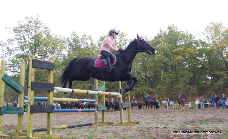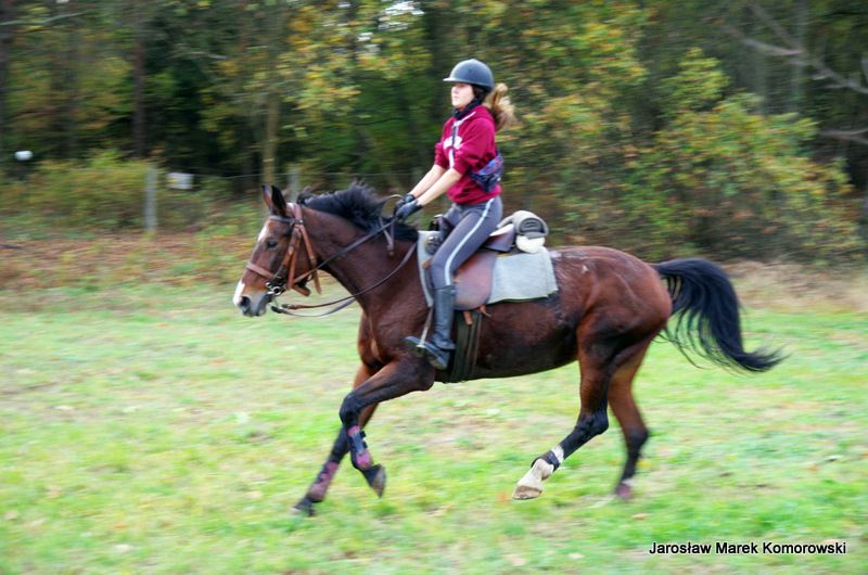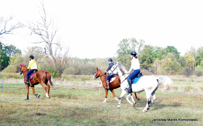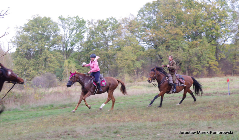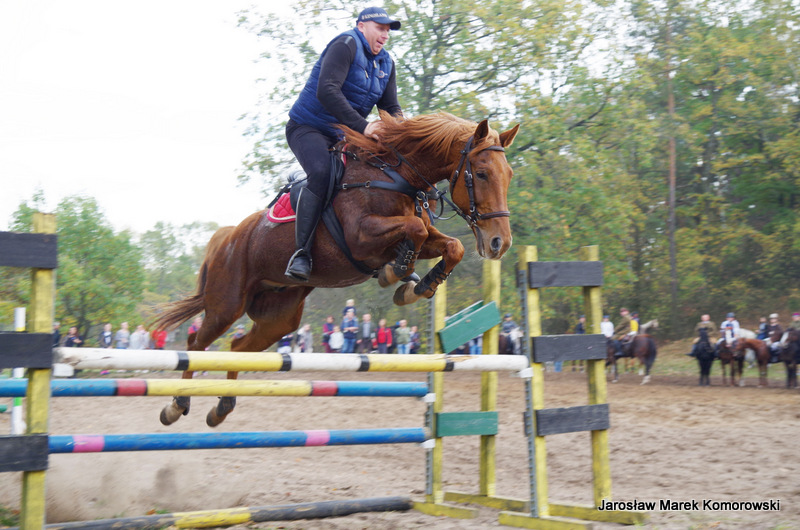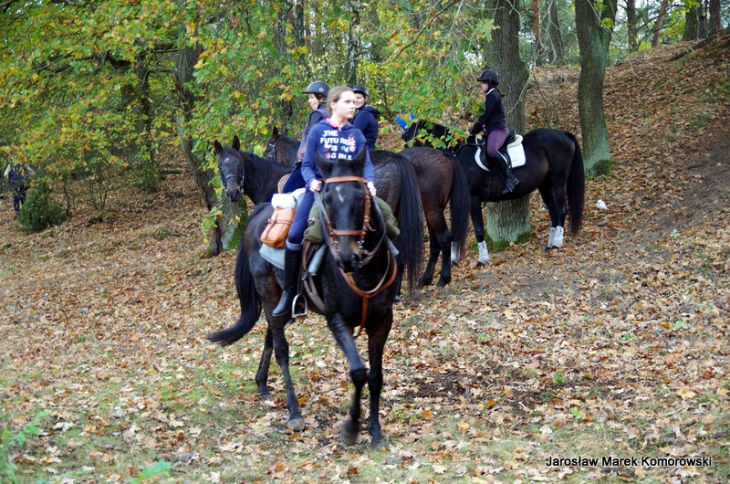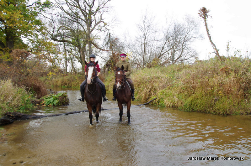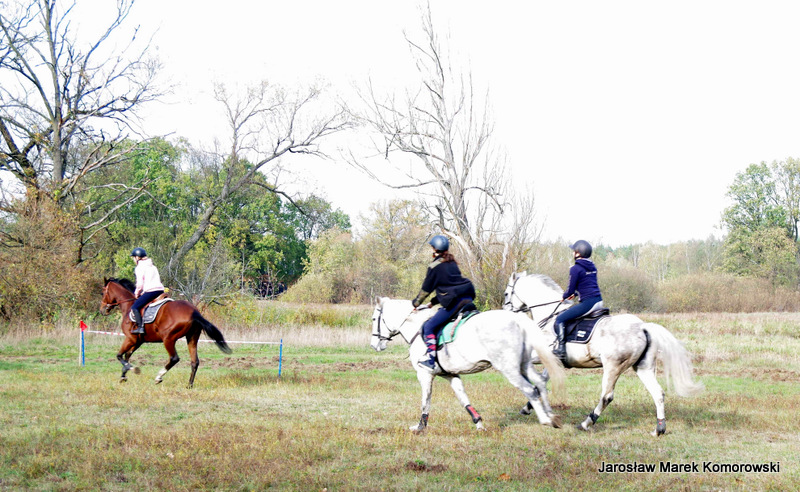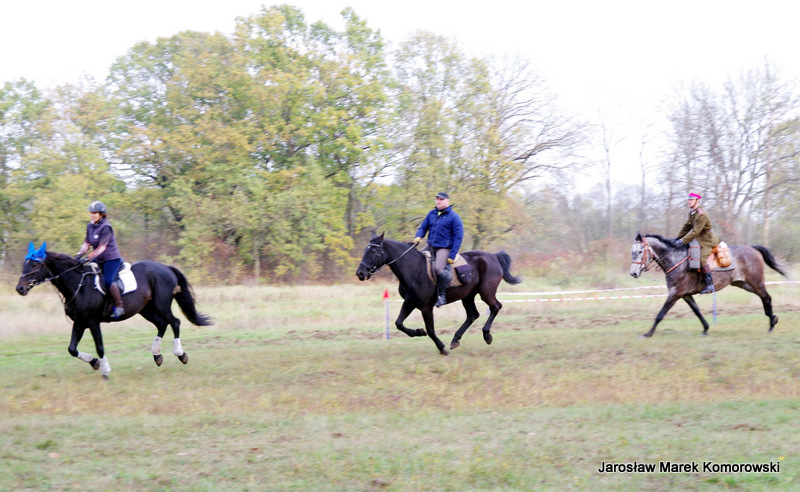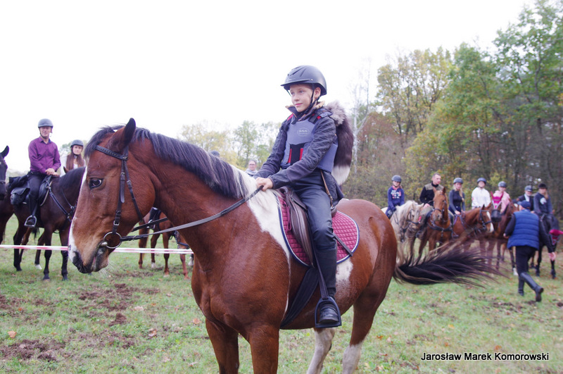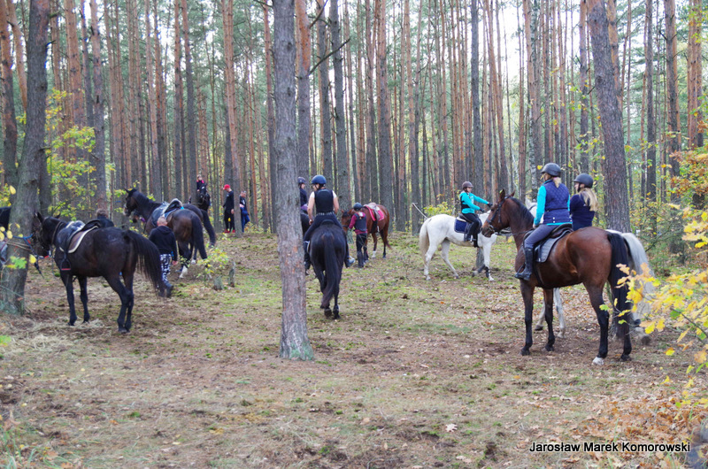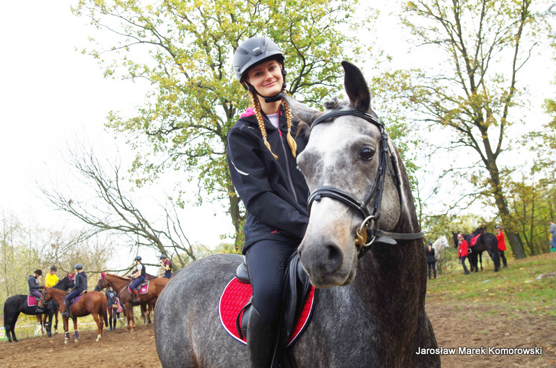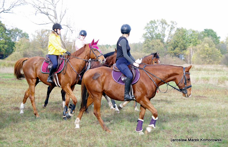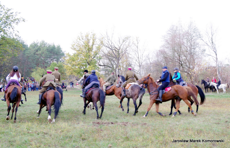 Wśród jeźdźców (Hubertus konny) urządzana jest natomiast tradycyjna gonitwa, która organizowana jest najczęściej na przełomie października i listopada. W trakcie biegu, uczestnicy konno ścigają tzw. Lisa, którym jest jeździec z ogonem przypiętym do lewego ramienia. Osoba, której uda się go zerwać ? wygrywa. Jako zwycięzca ma ona prawo wykonać rundę honorową wokół miejsca pogoni, i za rok sama ucieka jako lis. Często gonitwę poprzedza wspólny teren, który jest także swego rodzaju rozgrzewką dla wszystkich uczestników. Dla najmłodszych adeptów jeździectwa często organizowane są różnego rodzaju gry i zabawy, które polegają na odnalezieniu np. ukrytej lisiej kity. Zabawa kończy się wspólnym biesiadowaniem przy ognisku.