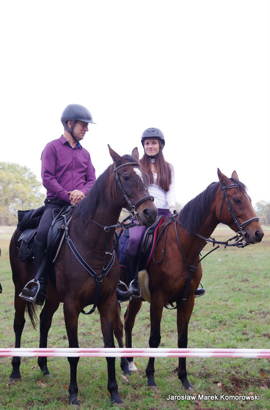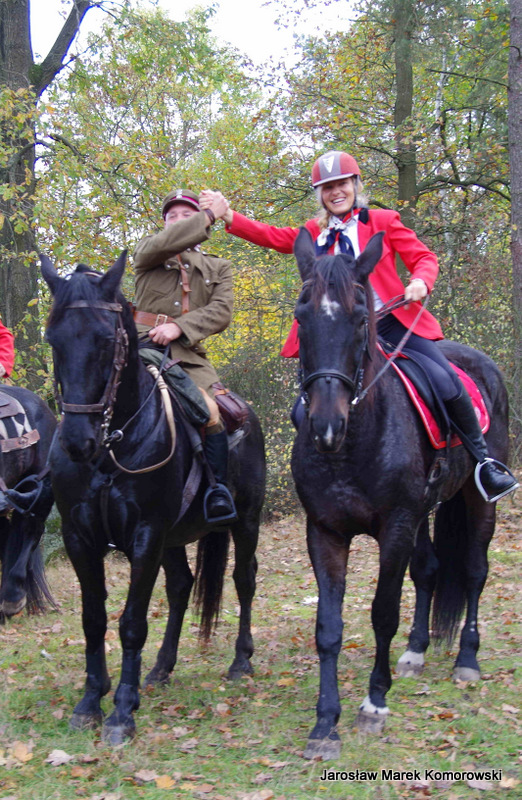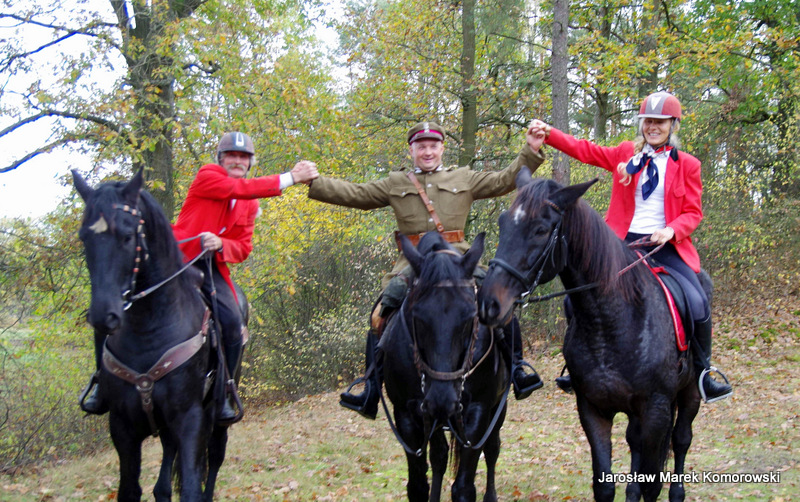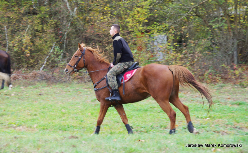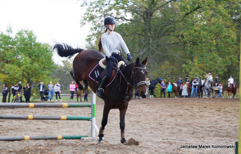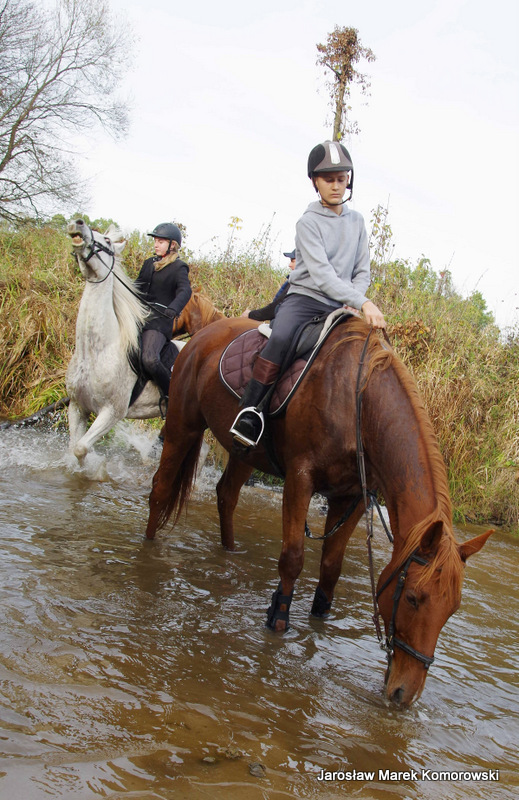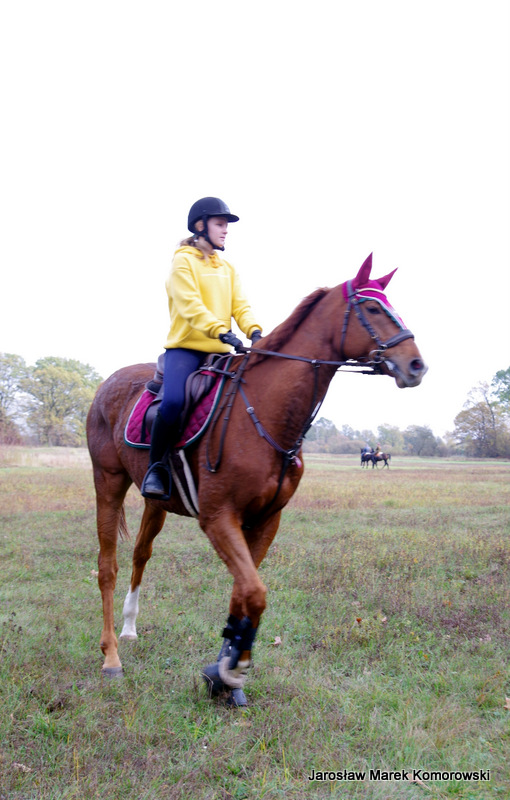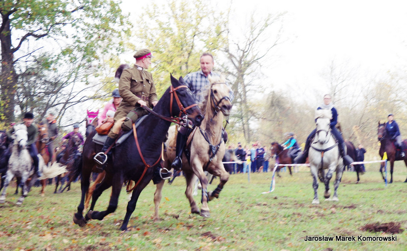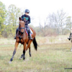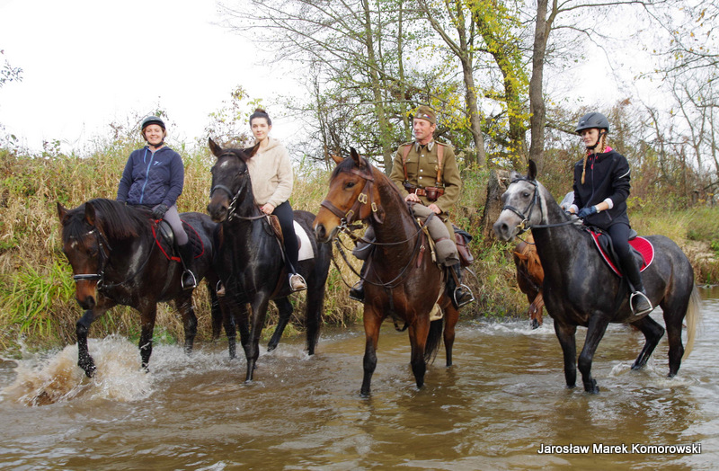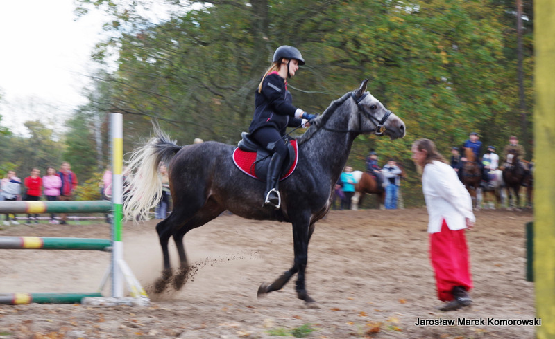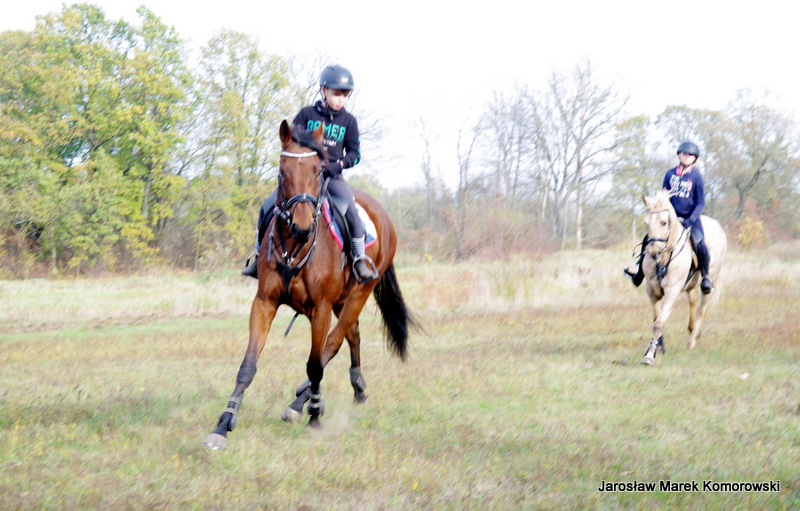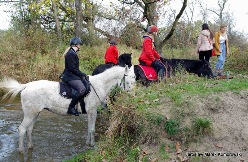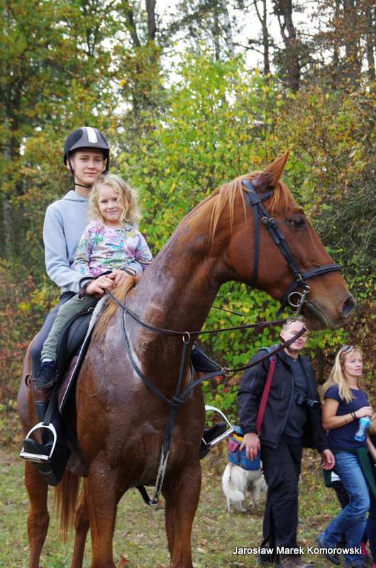 Wśród jeźdźców (Hubertus konny) urządzana jest natomiast tradycyjna gonitwa, która organizowana jest najczęściej na przełomie października i listopada. W trakcie biegu, uczestnicy konno ścigają tzw. Lisa, którym jest jeździec z ogonem przypiętym do lewego ramienia. Osoba, której uda się go zerwać ? wygrywa. Jako zwycięzca ma ona prawo wykonać rundę honorową wokół miejsca pogoni, i za rok sama ucieka jako lis. Często gonitwę poprzedza wspólny teren, który jest także swego rodzaju rozgrzewką dla wszystkich uczestników. Dla najmłodszych adeptów jeździectwa często organizowane są różnego rodzaju gry i zabawy, które polegają na odnalezieniu np. ukrytej lisiej kity. Zabawa kończy się wspólnym biesiadowaniem przy ognisku.